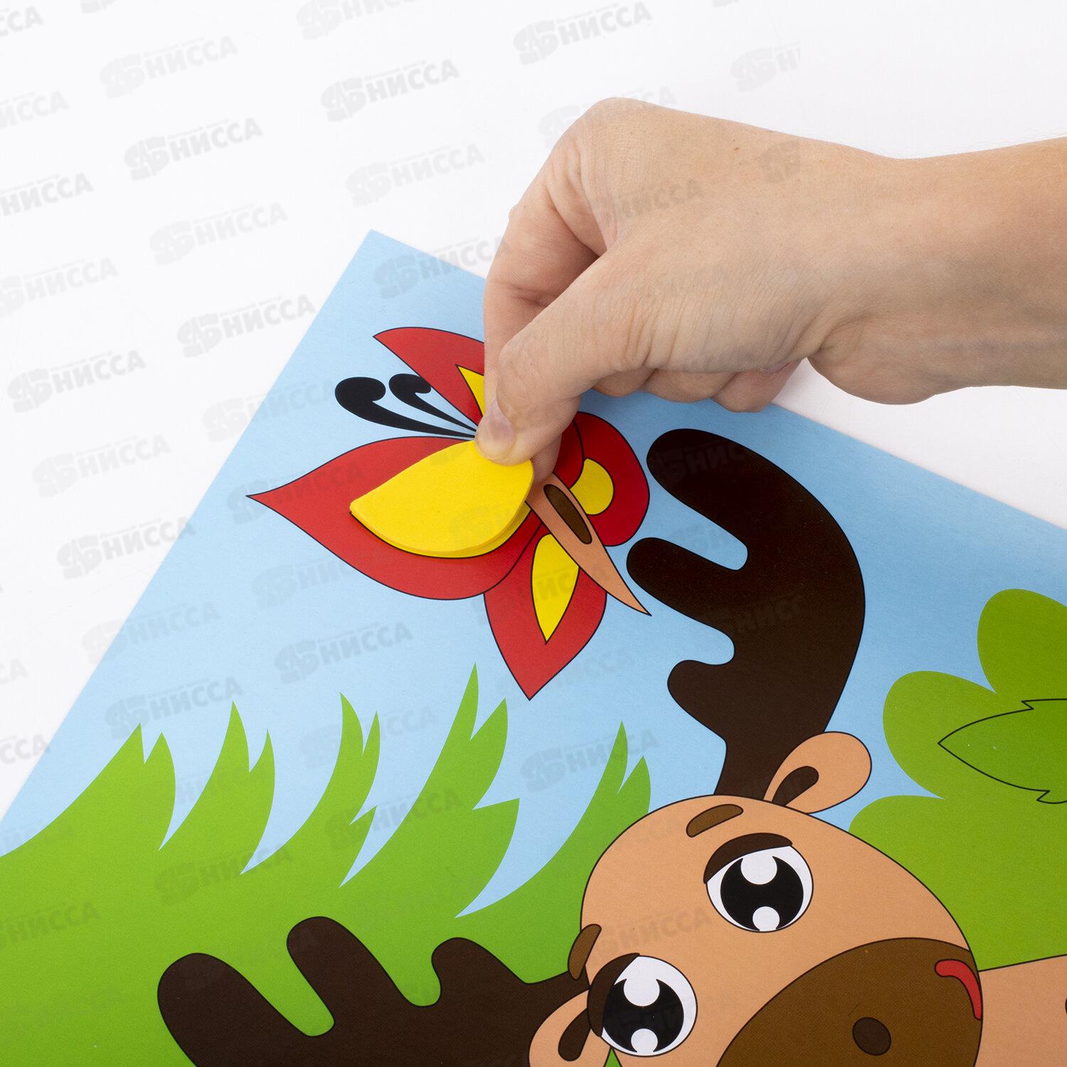 Аппликация из мягкого пластика EVA — это весёлый и занимательный способ развития мелкой моторики, аккуратности, цветового восприятия и фантазии ребёнка. Все элементы в составе самоклеящиеся, для работы не требуются ножницы и клей. В набор входит яркая картонная основа размером 21х29 см с напечатанным дизайном аппликации, разработанным дизайнерами ЮНЛАНДИЯ специально для детей, а также 8 листов мягкого пластика разных цветов. Элементы аппликации перфорированы и имеют клеевой слой, что позволяет создать аппликацию без клея и ножниц.