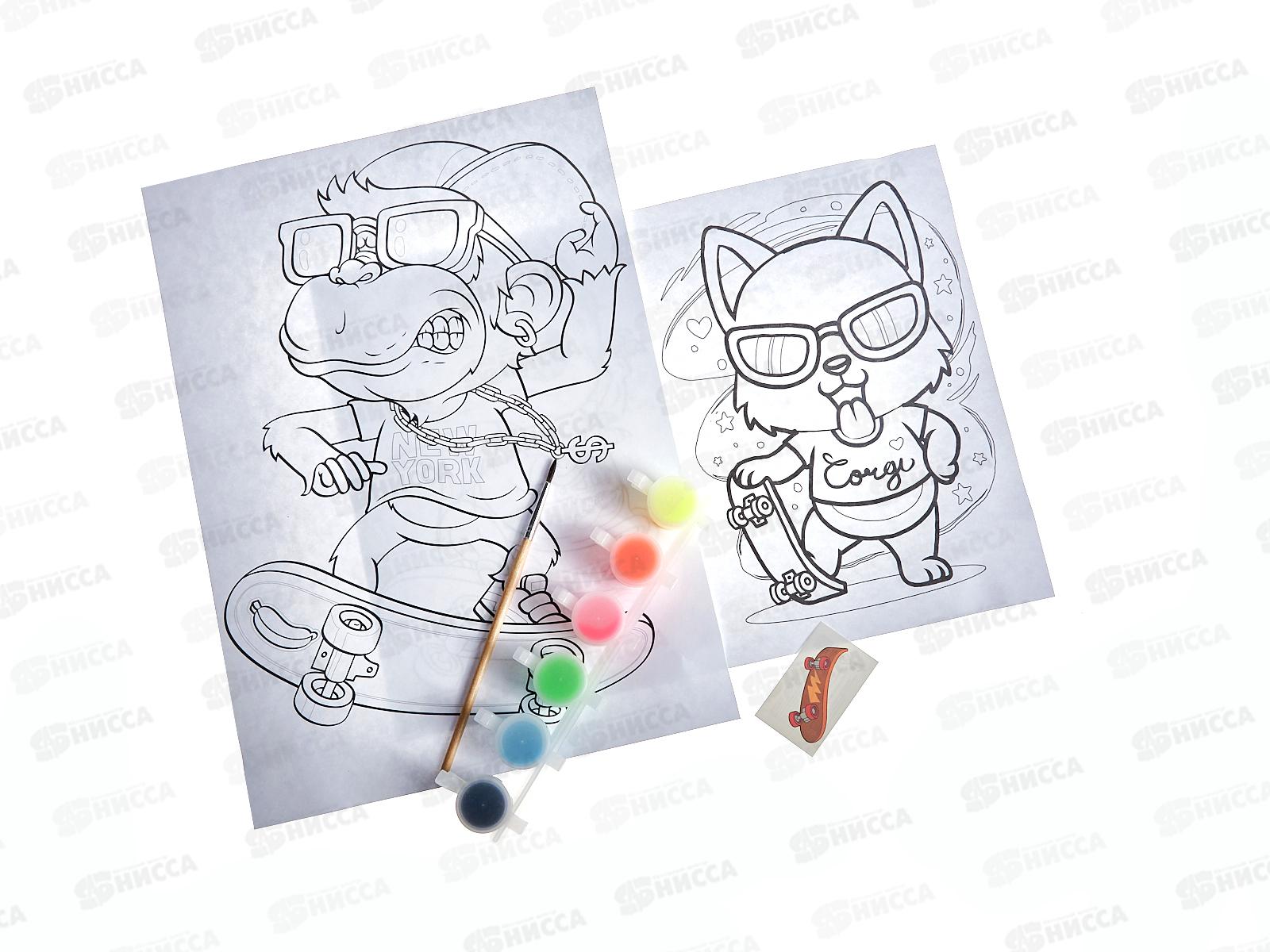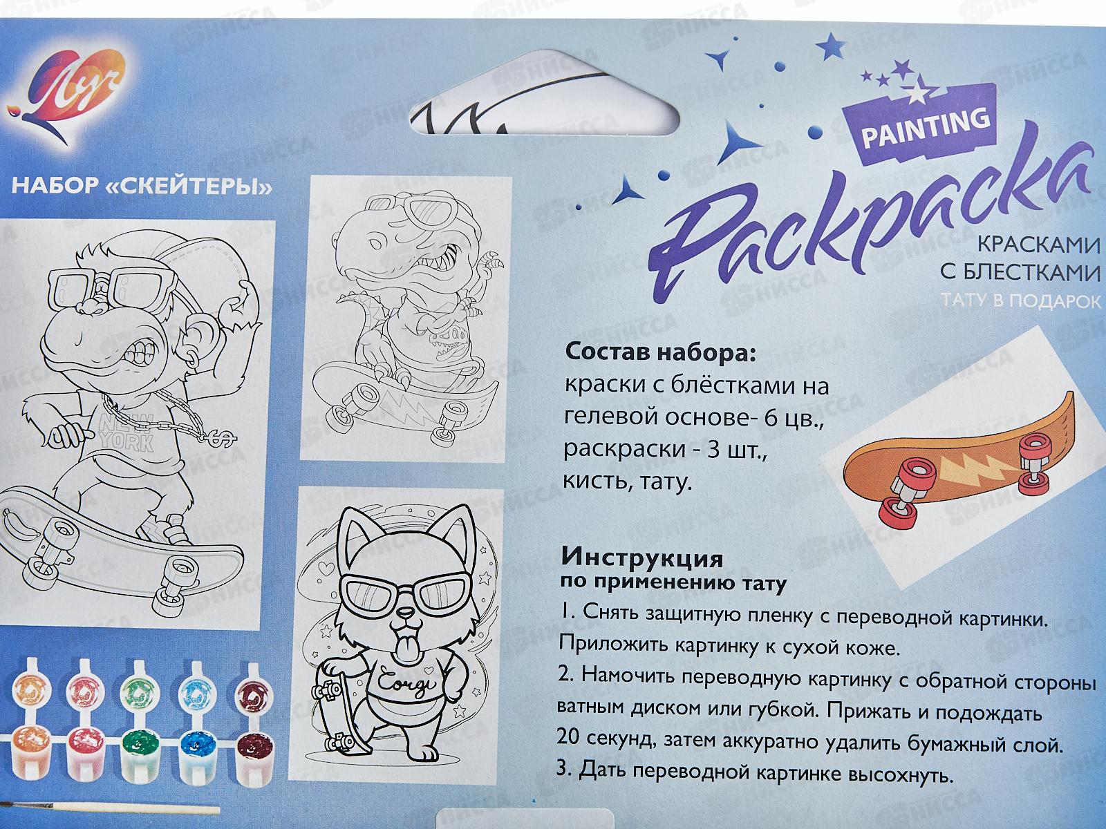 Набор Луч красок с блестками с раскрасками "Скейтеры",31с 2071-08