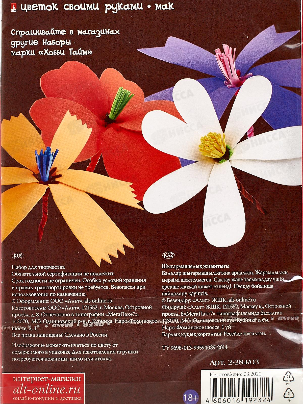 Набор д/творч. АЛЬТ Творим из фоамирана, Цветок Мак 2-284/03 *10
