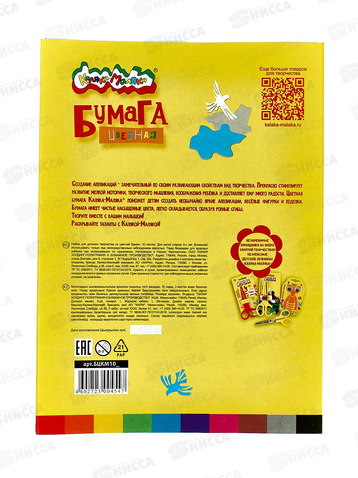 Цветная бумага 10 листов 10 цветов А4 Каляка-Маляка, БЦКМ10_ *40