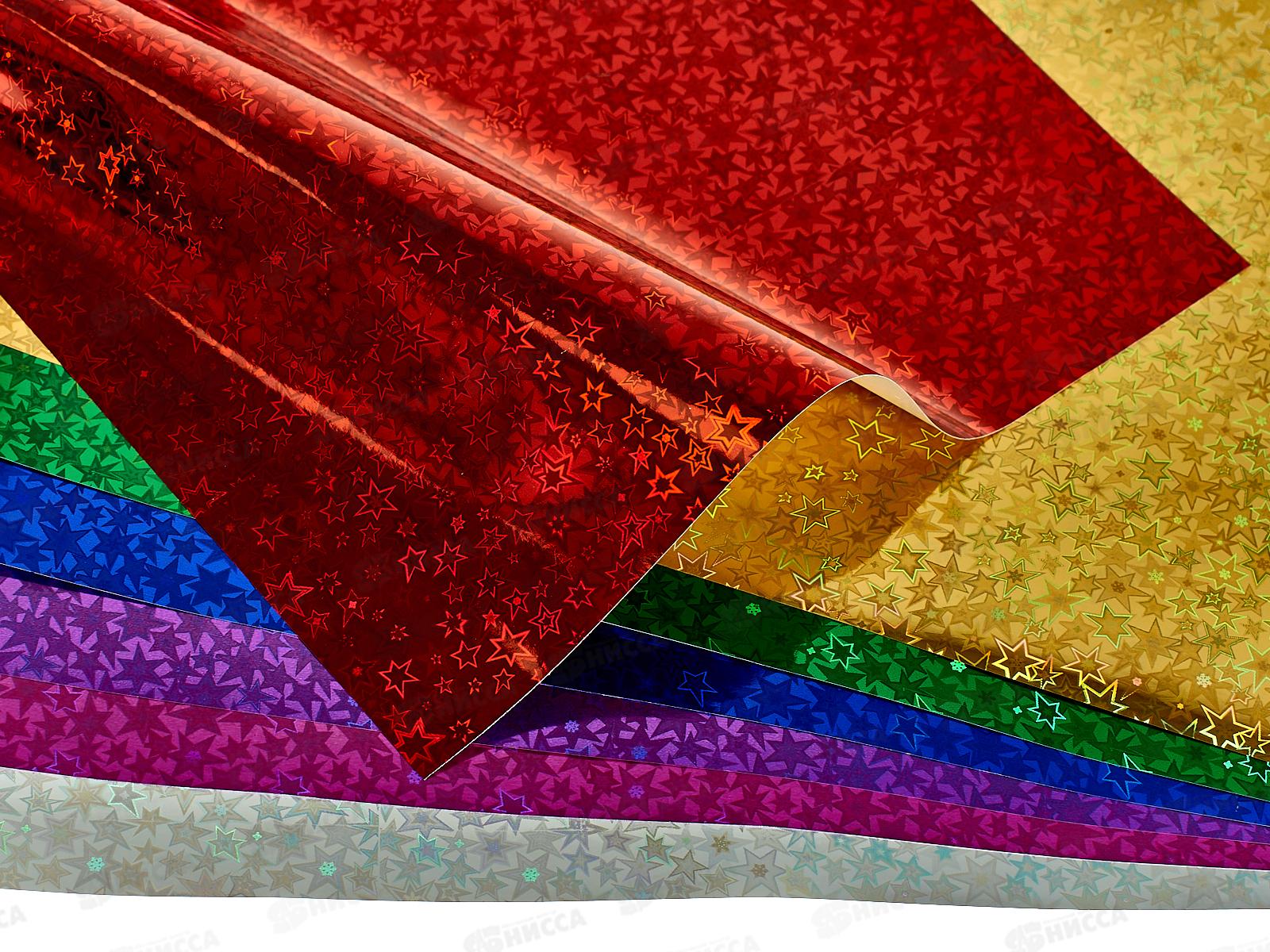 Переливающийся космический звездный узор голографической ламинированной (металлик) бумаги вдохновит ребенка на волшебные поделки. Такая бумага отлично украсит работу или подарок. Поделки и аппликации из нее получаются нарядными и волшебными.