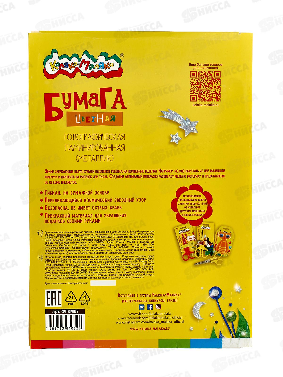 Цветная бумага голографическая Каляка-Маляка 7цветов 7л А4, ФГКМ07 *100