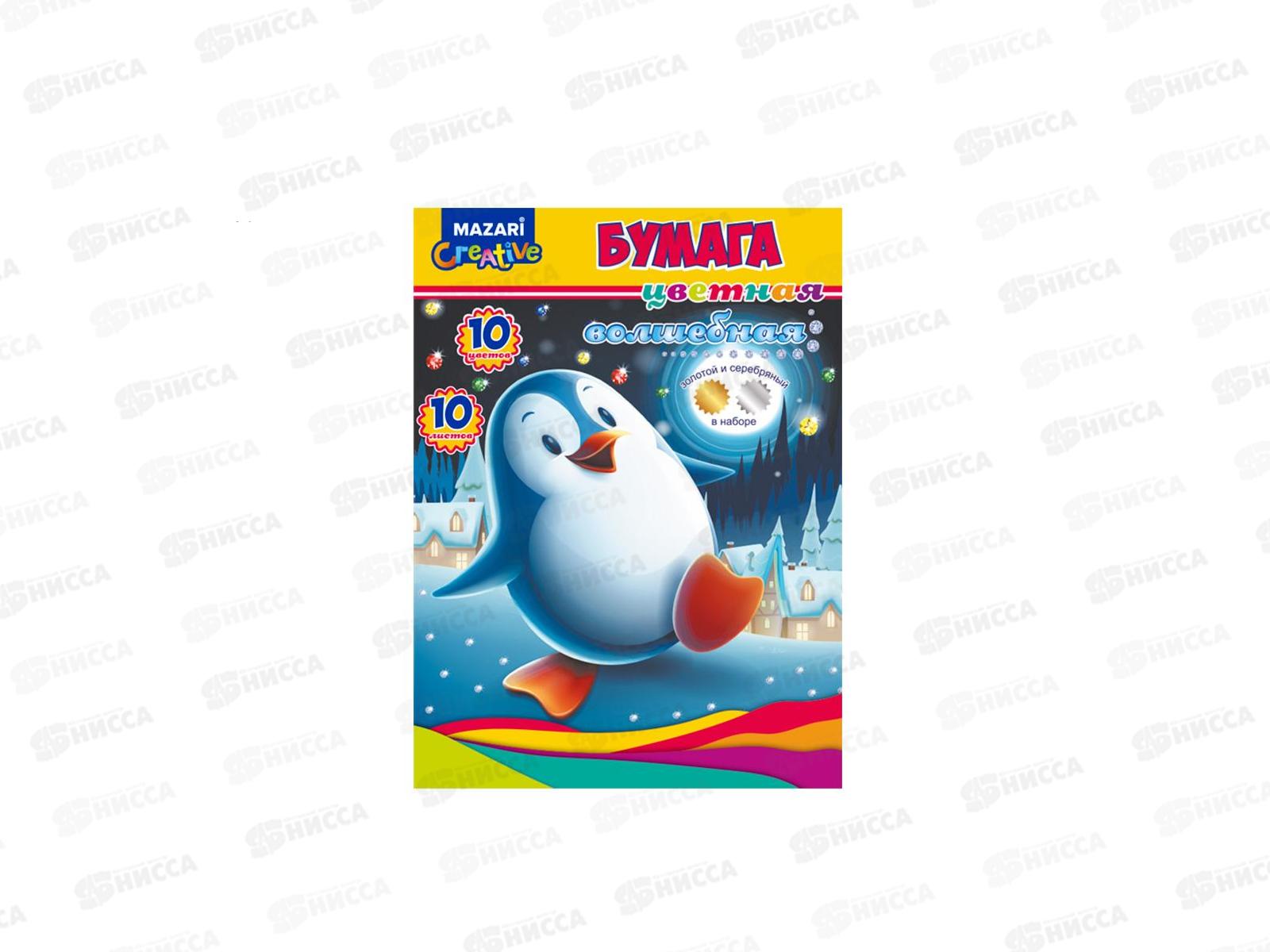 Цветная бумага 10листов 10цветов MAZARI ,мелованная,(золото+серебро)M-16237*50