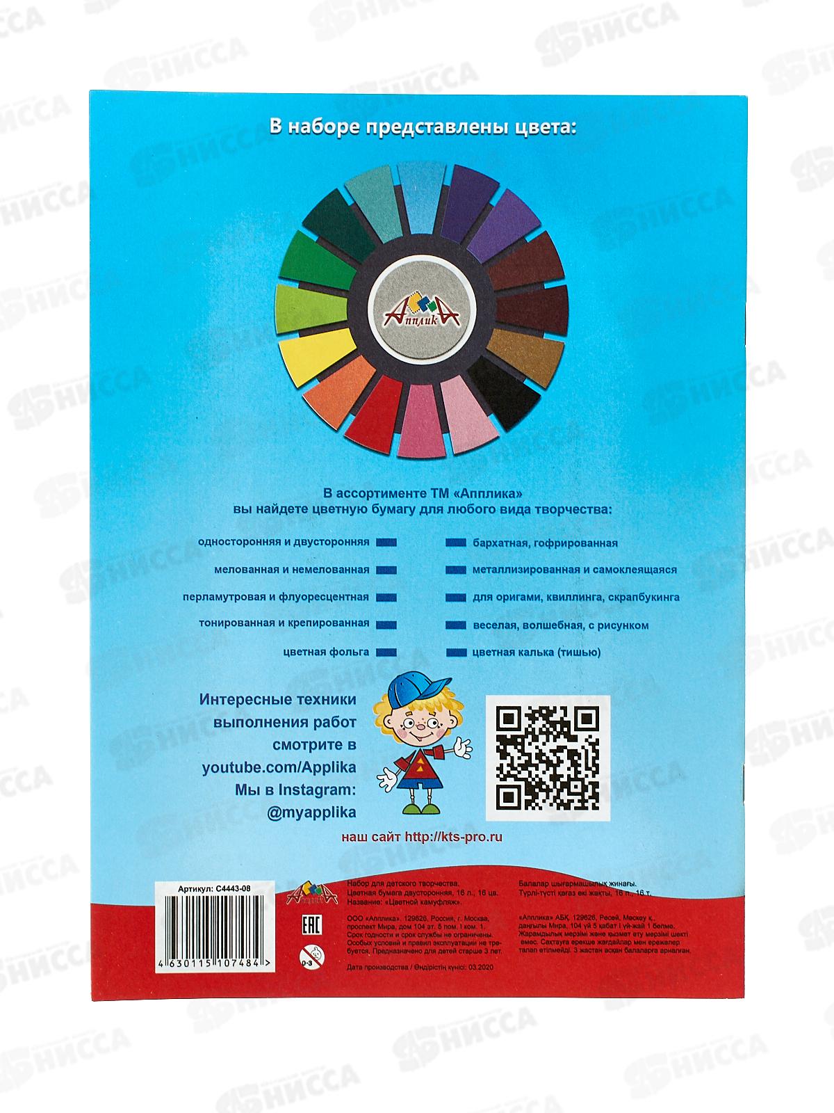 Цветная бум. двуст. 16л 16цв А4 Апплика Цветной камуфляж,4443-08*60