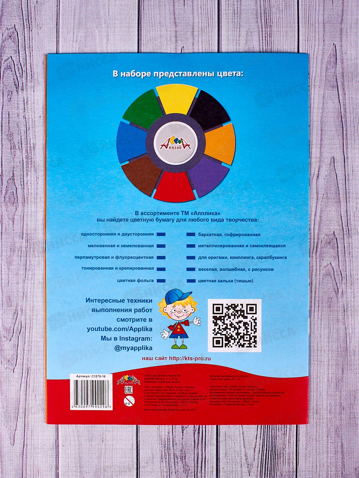 Цветная бумага 8листов 8цветов, Апплика Цветные кошки,С1279-16*60