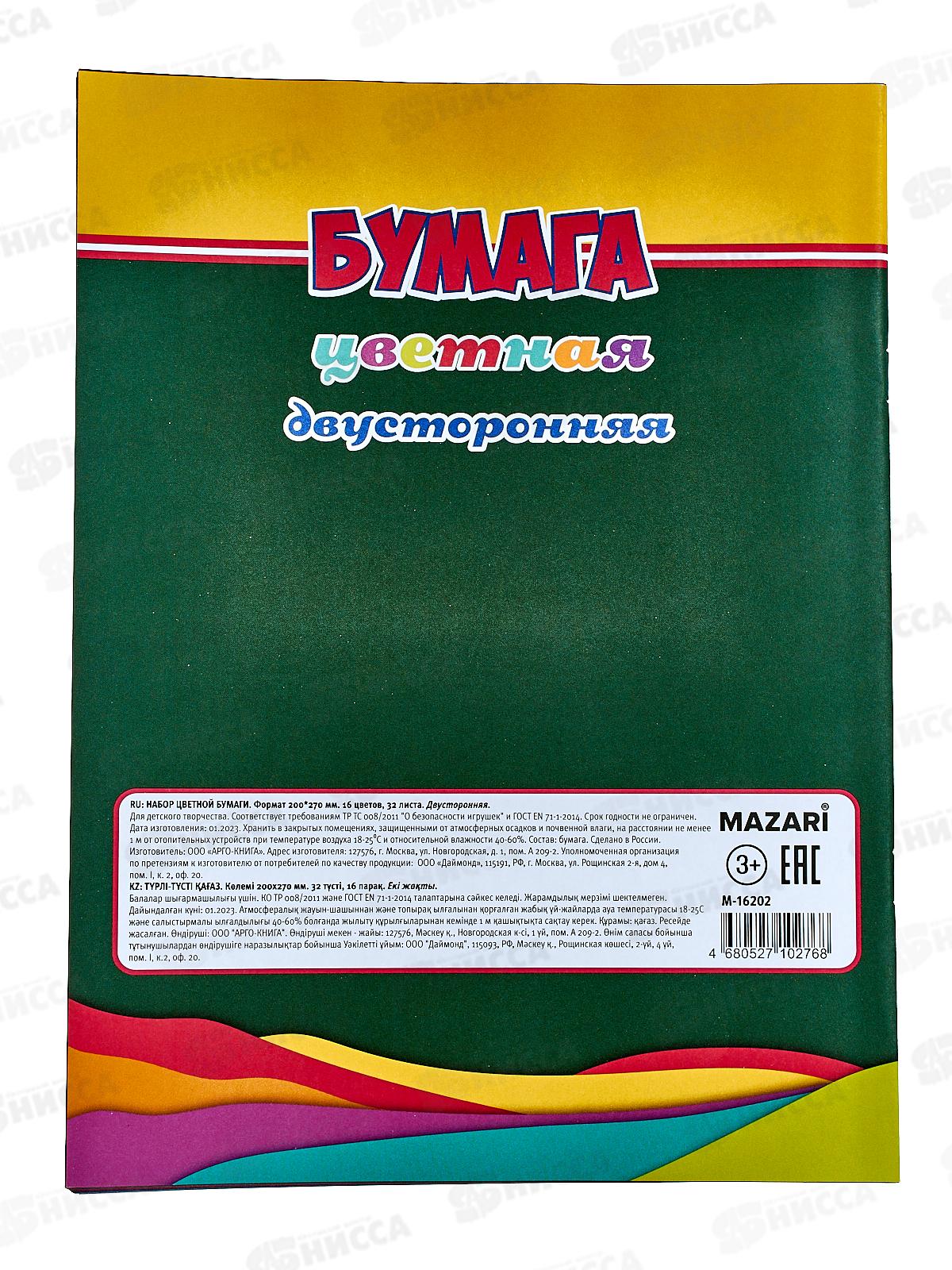 Цветная бум. 32л 16цв MAZARI ,офс.,двуст.,M-16202*50