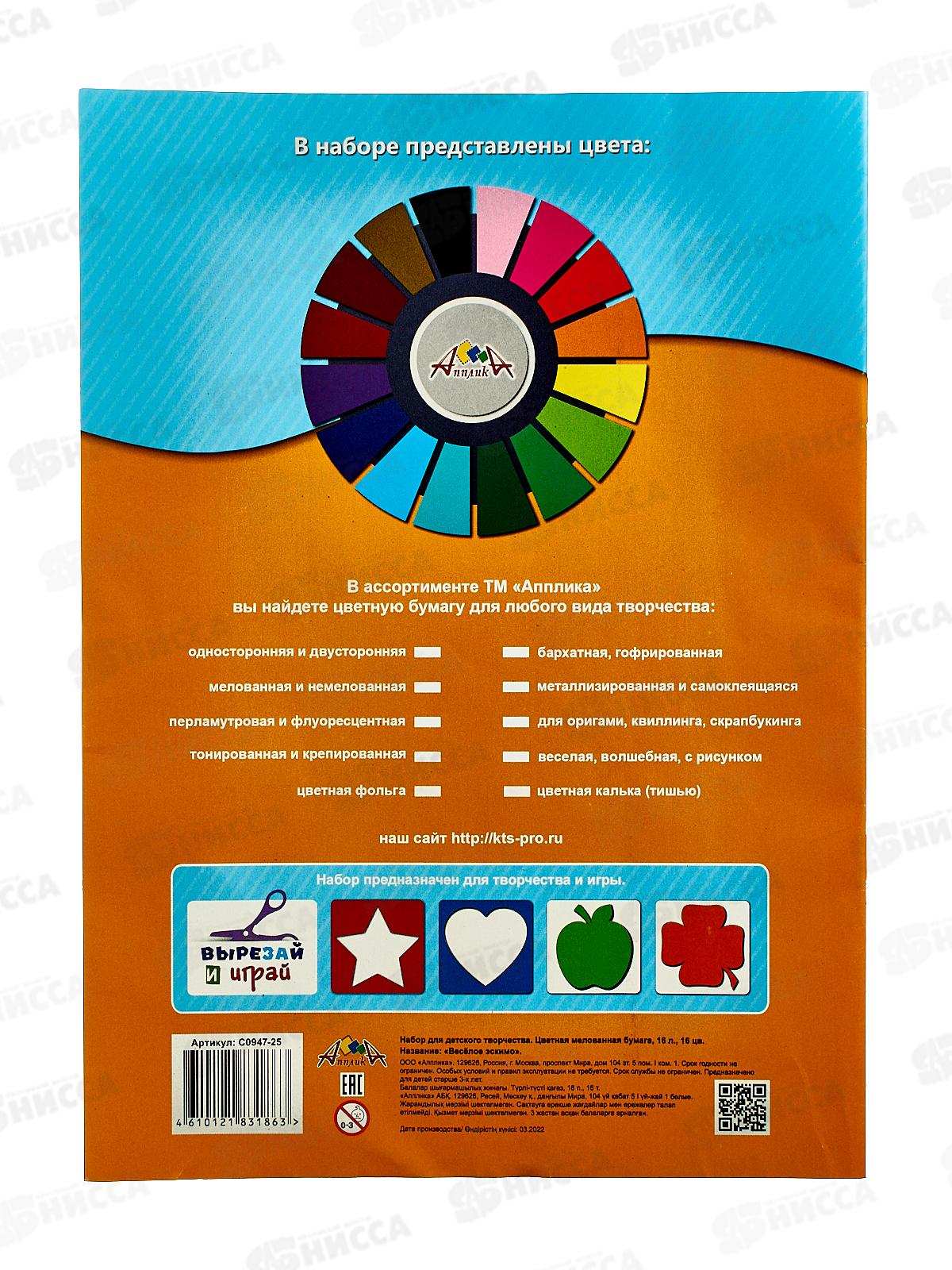 Цветная бум. 16л 16цв Апплика Веселое эскимо С0947-25*50