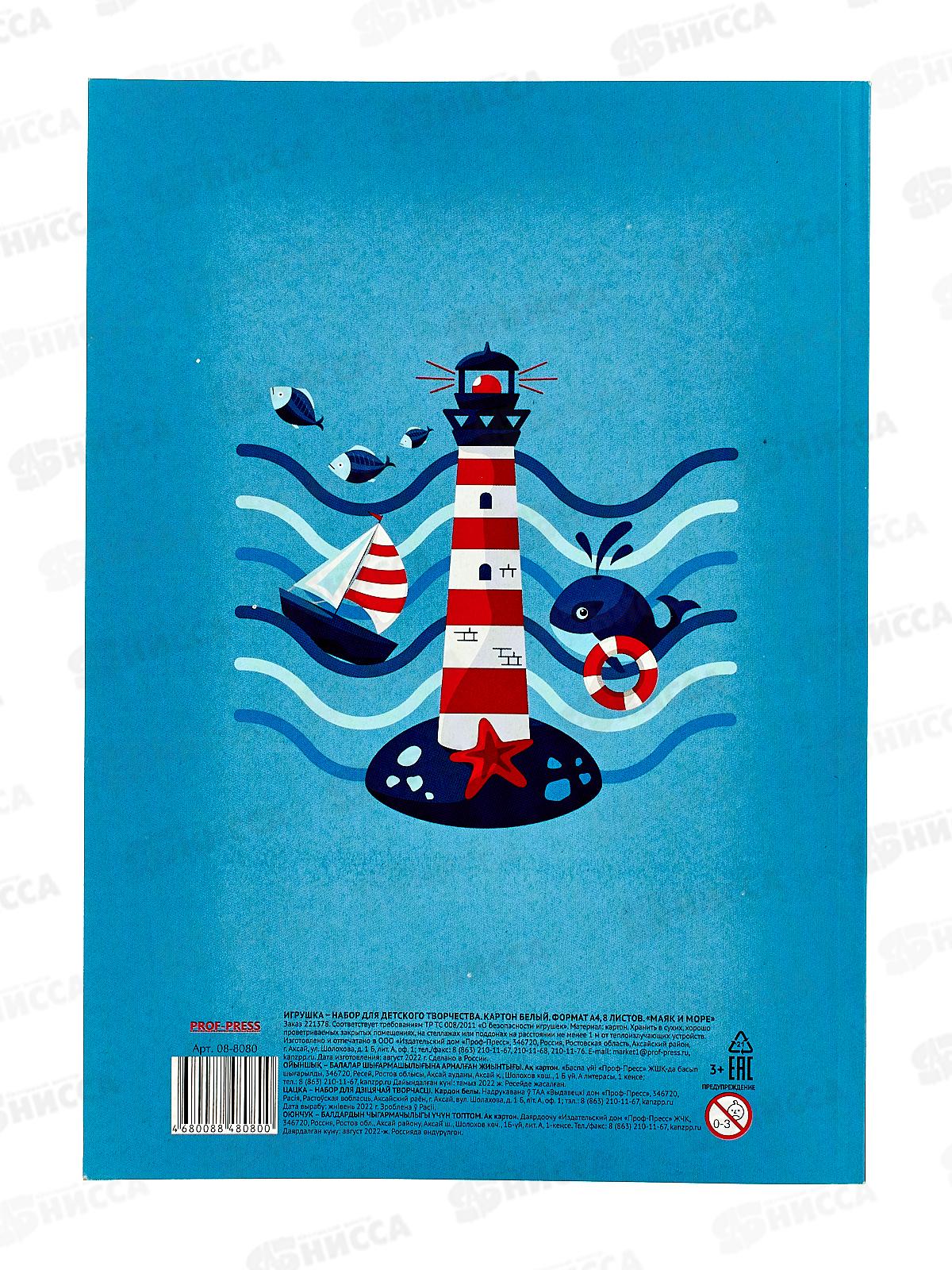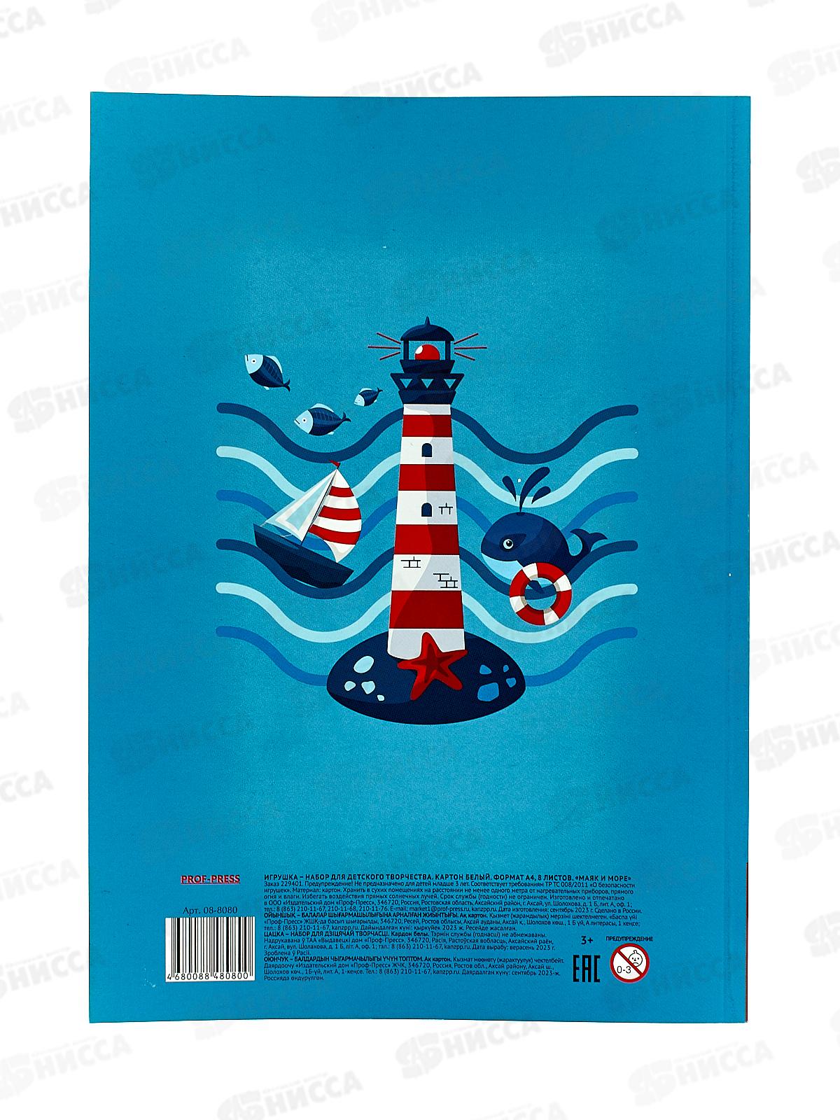 Картон белый А4 ПП 8л Маяк и море, 08-8080 *30