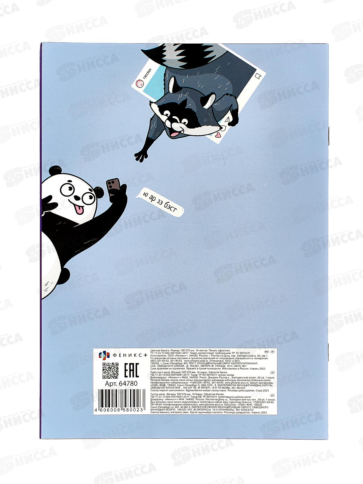 Цветная бумага 16л А4 ФЕН Селфи,64780*50