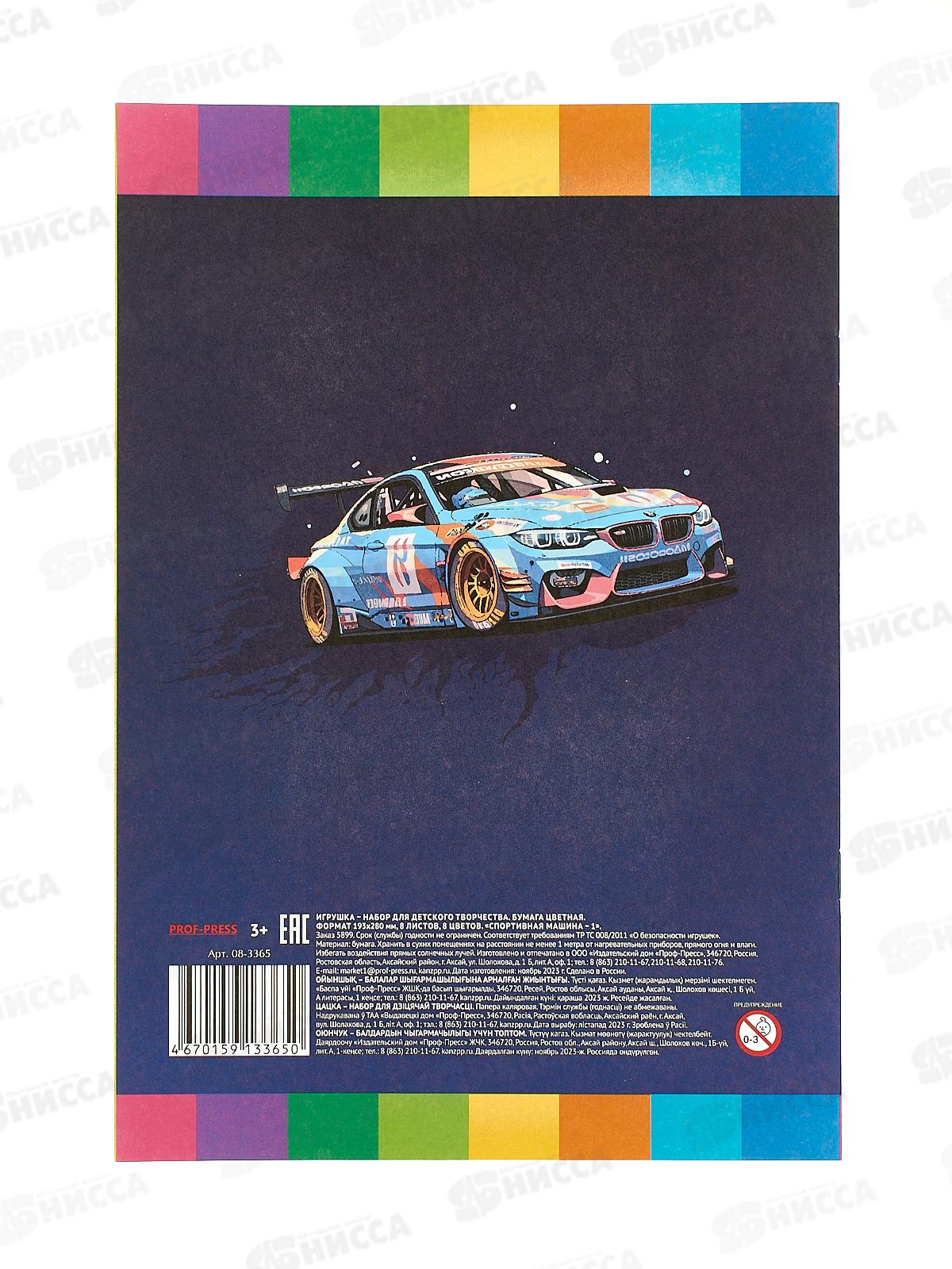 Цветная бумага 8л 8цв ПП А4 Спортивная машина, 08-3365 *50