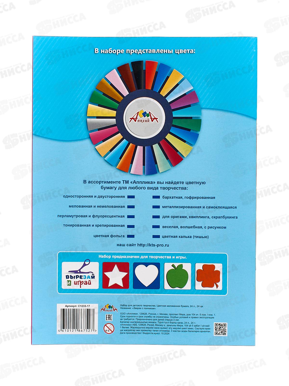 Цветная бум. 24л 24цв Апплика Зверек с пончиком,С1233-17 *50