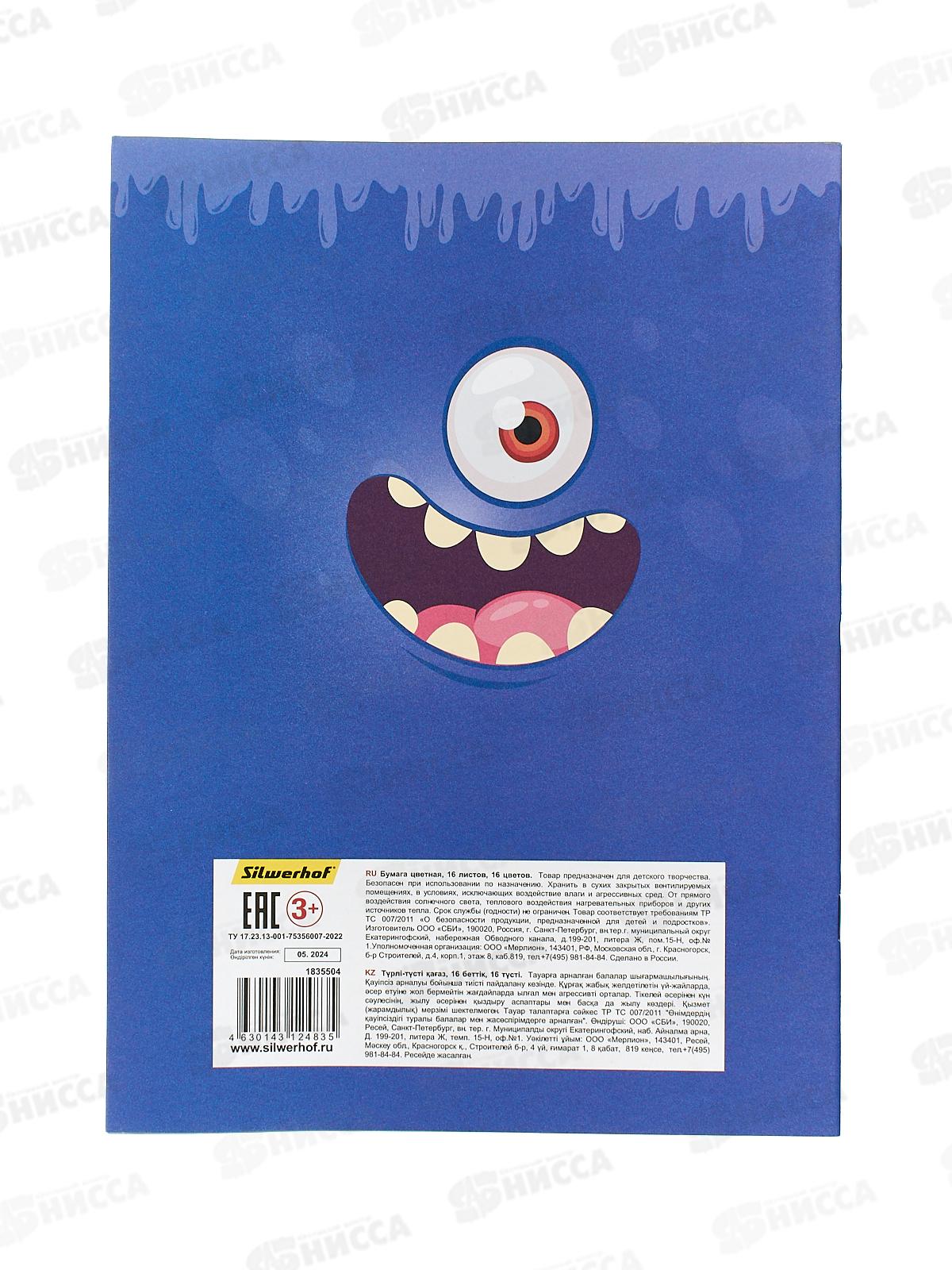 Цветная бум.16л 16цв SILWERHOF одност.А4 Монстрики 1835504