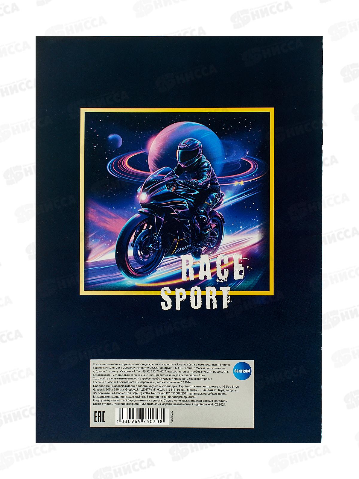 Цветная бум. 16л 8цв Centrum Мотоцикл, мел. одност., 75030 *50