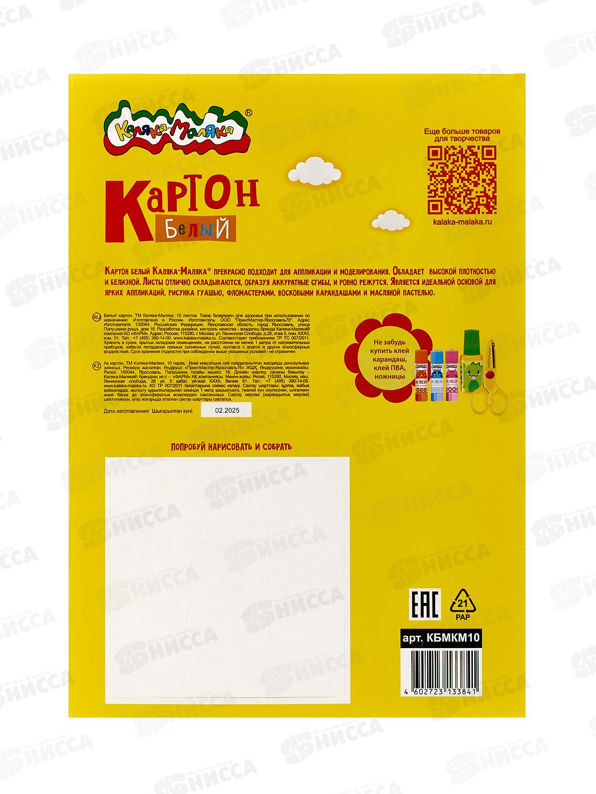 Картон белый А4 10л Каляка-Маляка, мел., КБМКМ10 *10