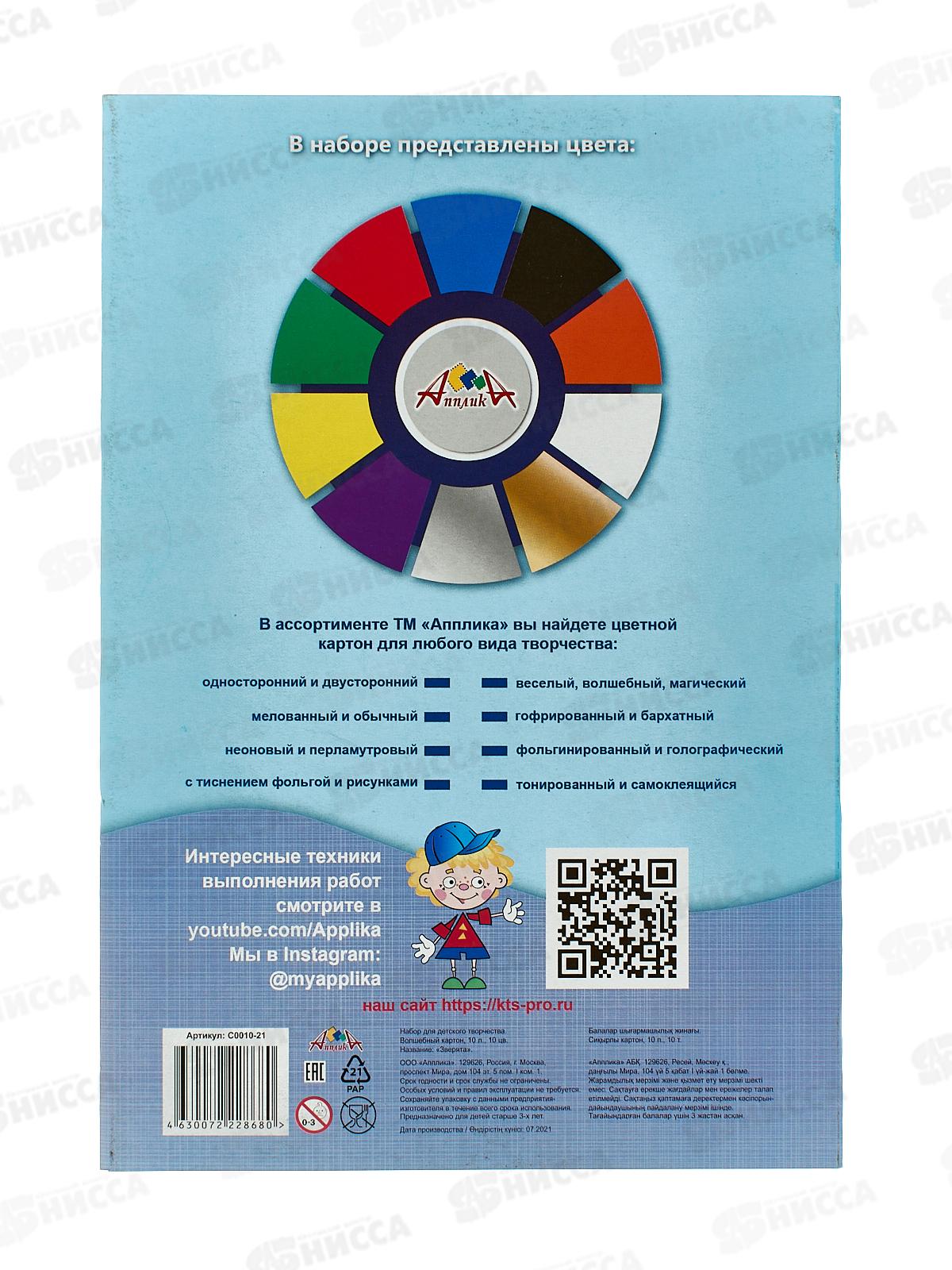 Цветной карт. 10л 10цв Апплика Зверята,С0010-21*50