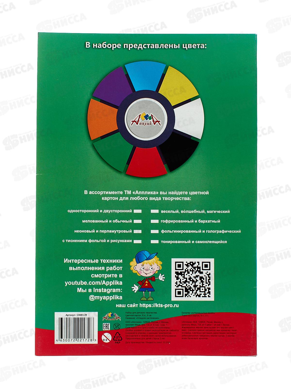 Цветной карт. А4 Апплика 8цв 8л ,Сладкое настроение, С0003-39*50