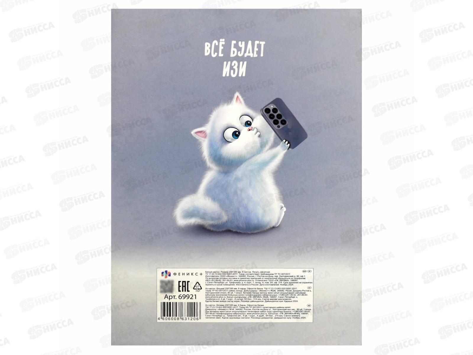 Картон Белый А4 ФЕН 8л Веселый кот, мелов.69921 *40