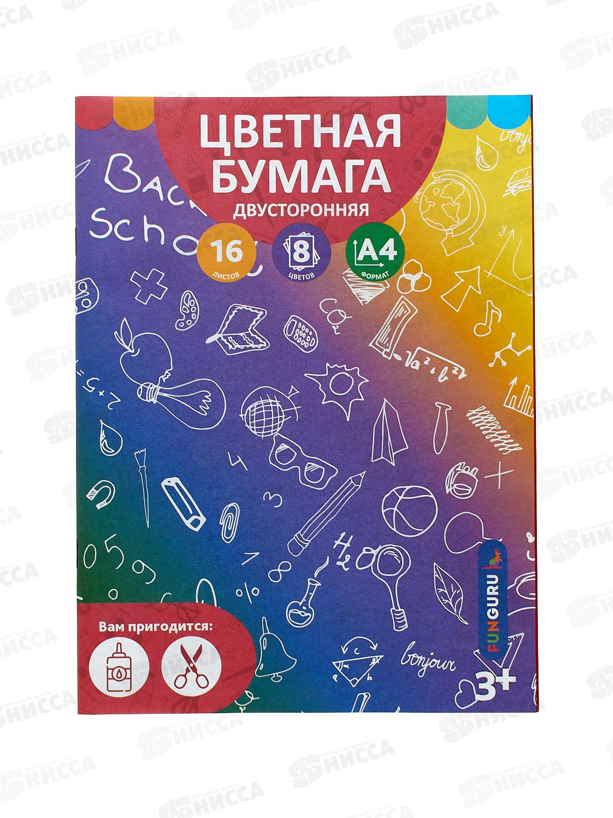 Цветная бумага 16л 8цв А4 Funguru "Снова в школу!" двустор. немел, ТМ-БЦ-06