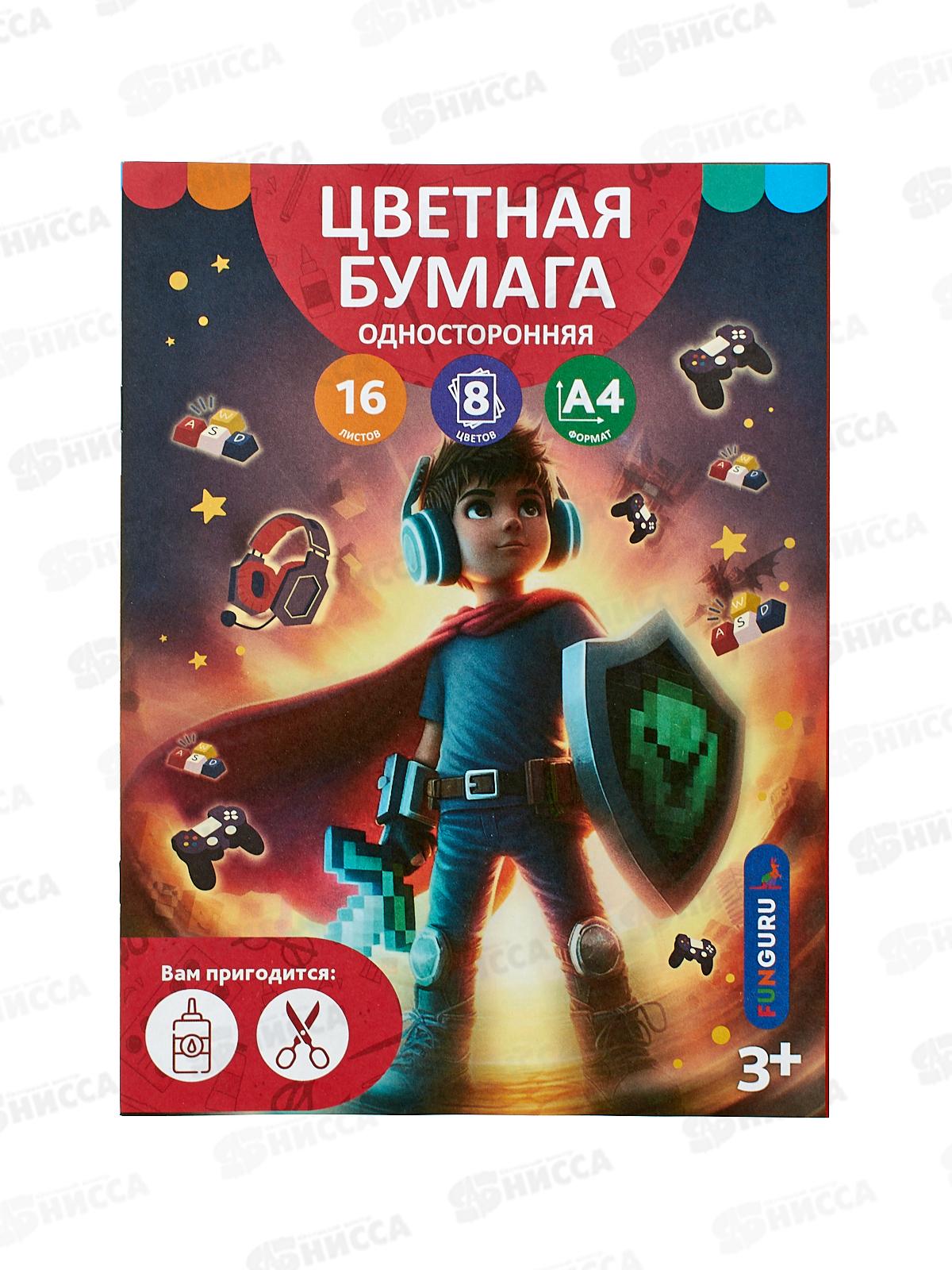 Цветная бумага 16л 8цв А4 Funguru "Геймер" немел, ТМ-БЦ-07