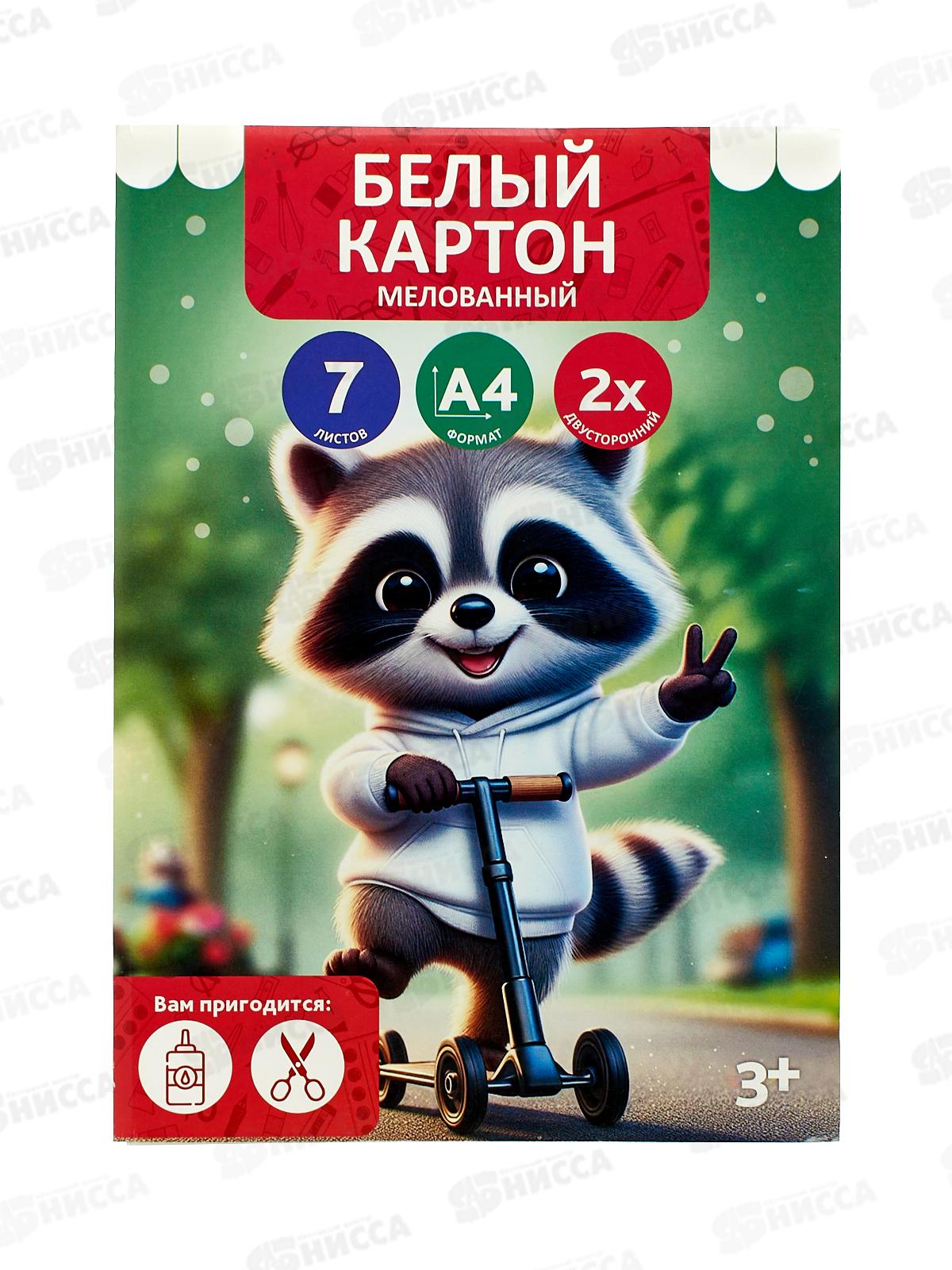 Картон Белый 7л А4 "Классный енот" мелов., двустор. ТМ-БКМ-04