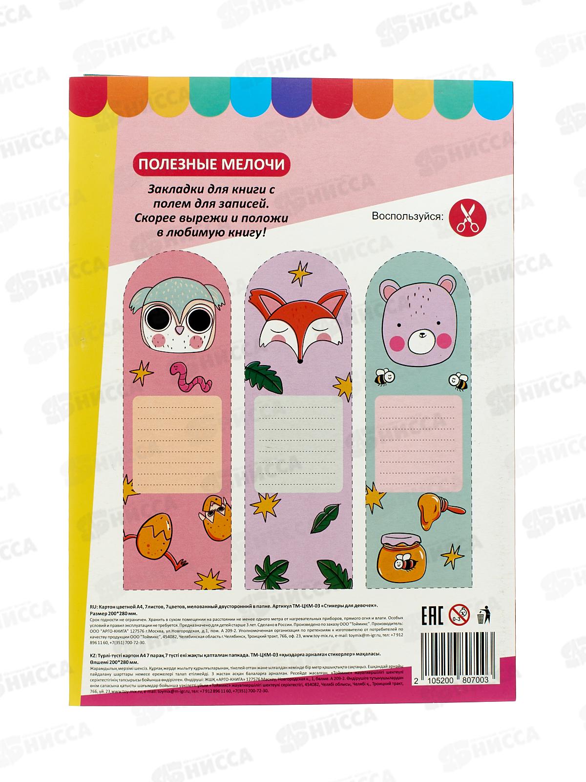 Цветной картон 7л. 7цв. "Стикеры для девочек" мелов. двустор. ТМ-ЦКМ-03