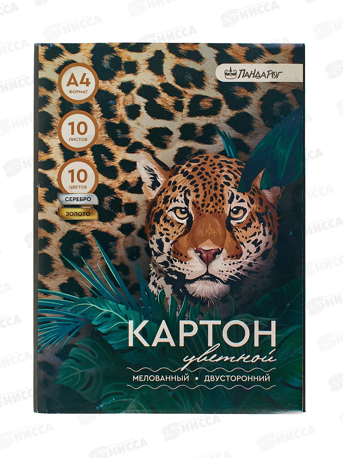Цветной карт. 10л 10цв ПандаРог "Дикие тропики" А4 двухст. (8цв+зол.+сер), 15-5878*30