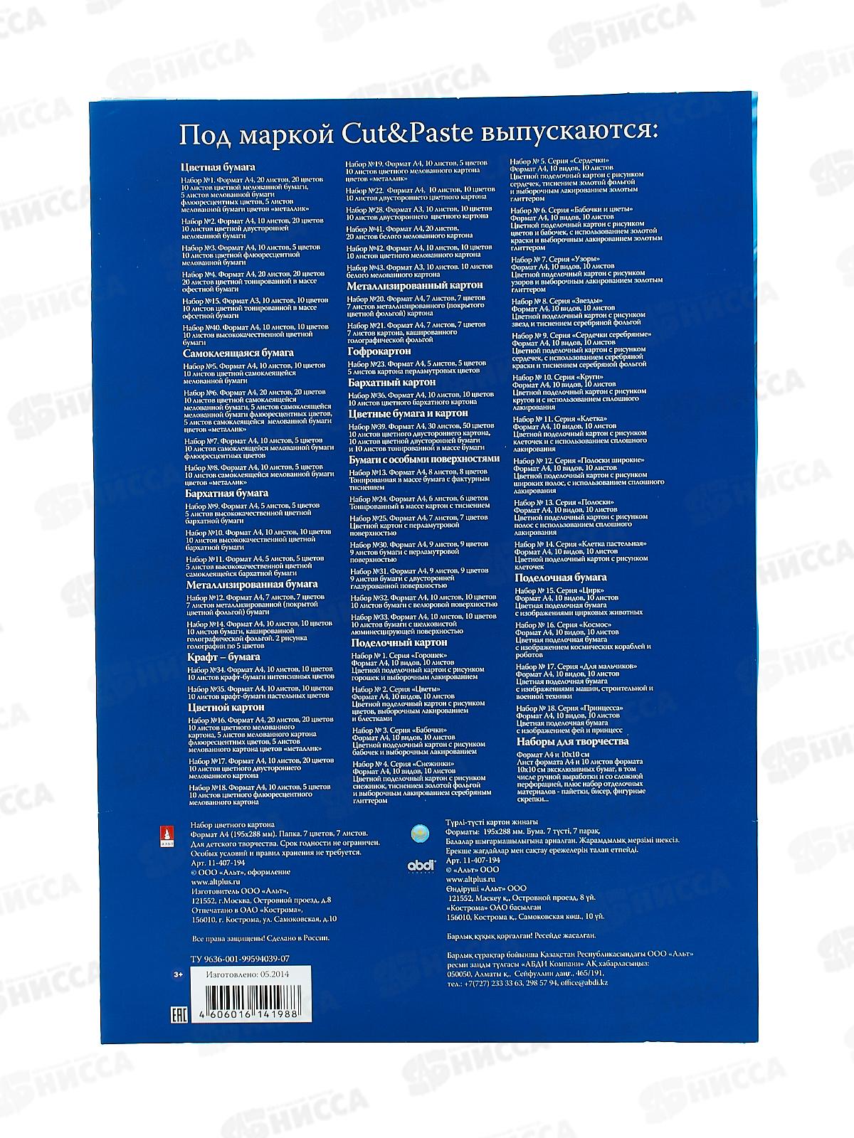 Тип товара: Цветной картон