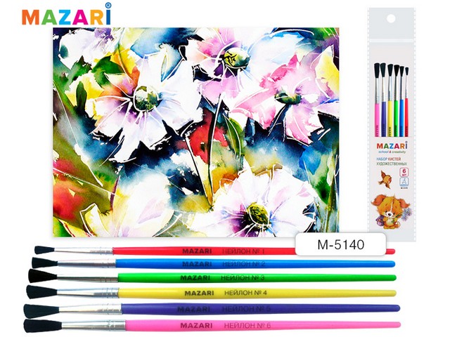 • Кисти набор MAZARI 6шт. нейлон (1, 2, 3, 4, 5, 6), M-5140 *10/50