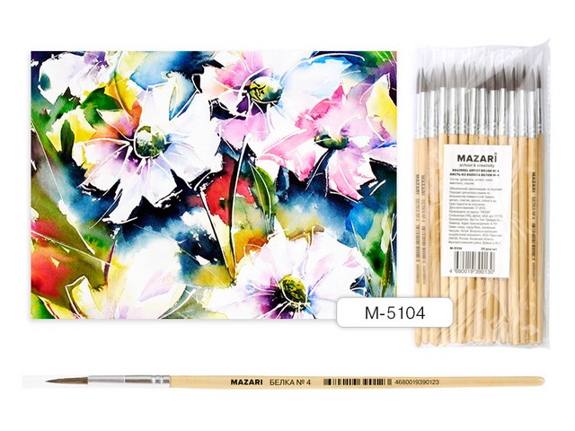 Кисть Mazari М-5104 Белка 4 круглая художественная. *25/500
