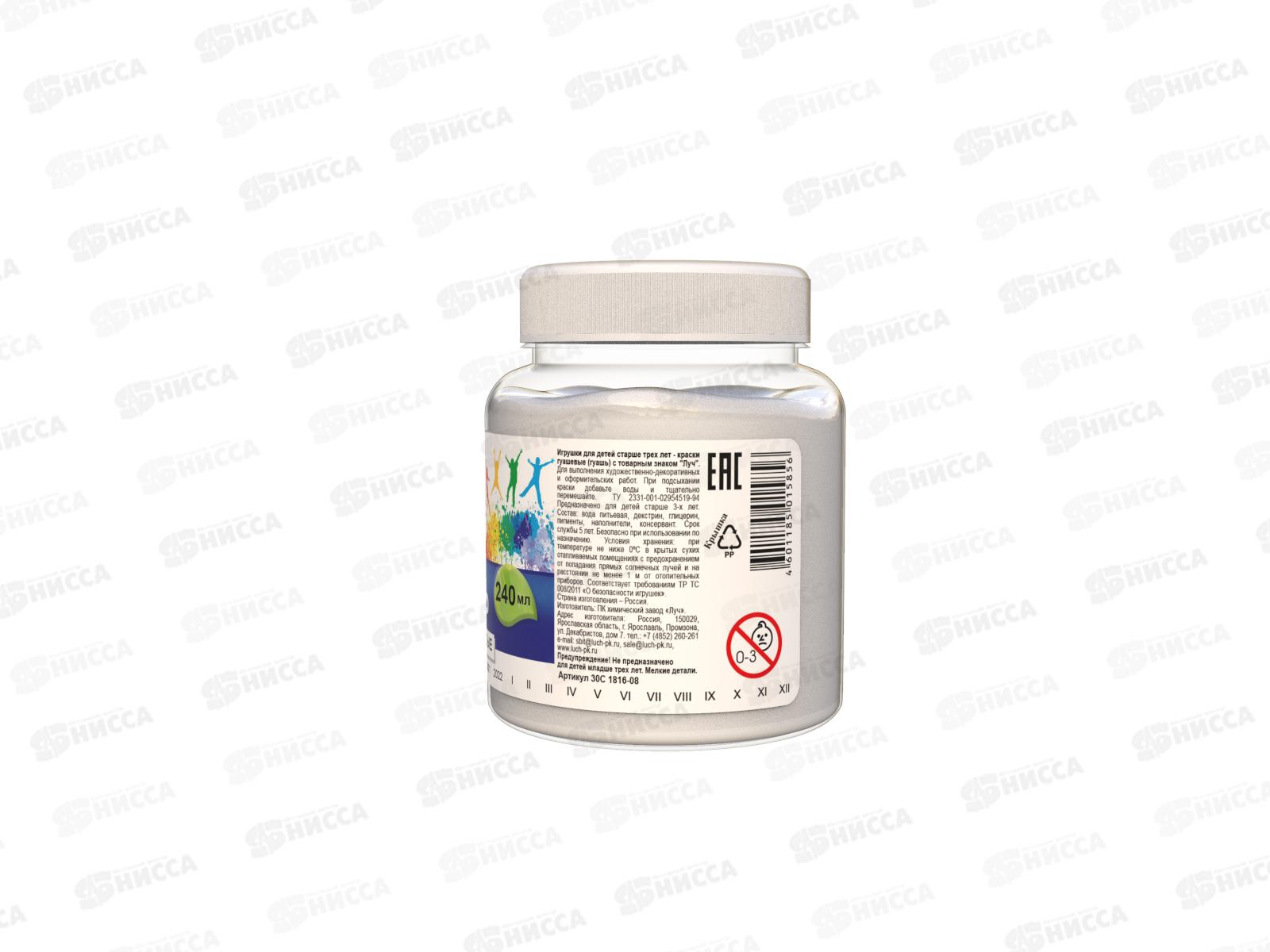 Гуашь ЛУЧ 240мл белила цинковые, 30с1816-08 *15