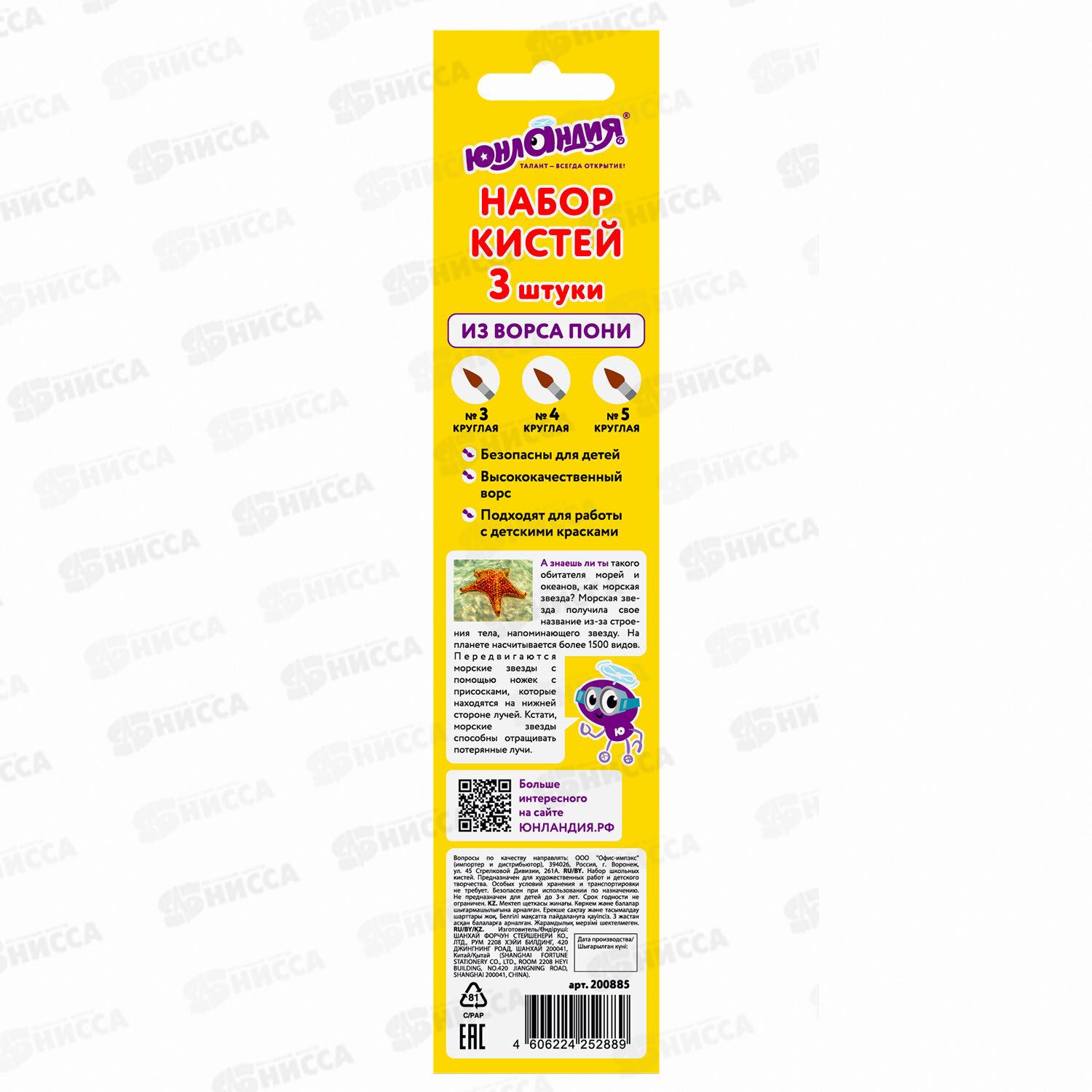 Кисти Юнландия набор 3шт(пони,круглые №3,4,5), 200885 *12