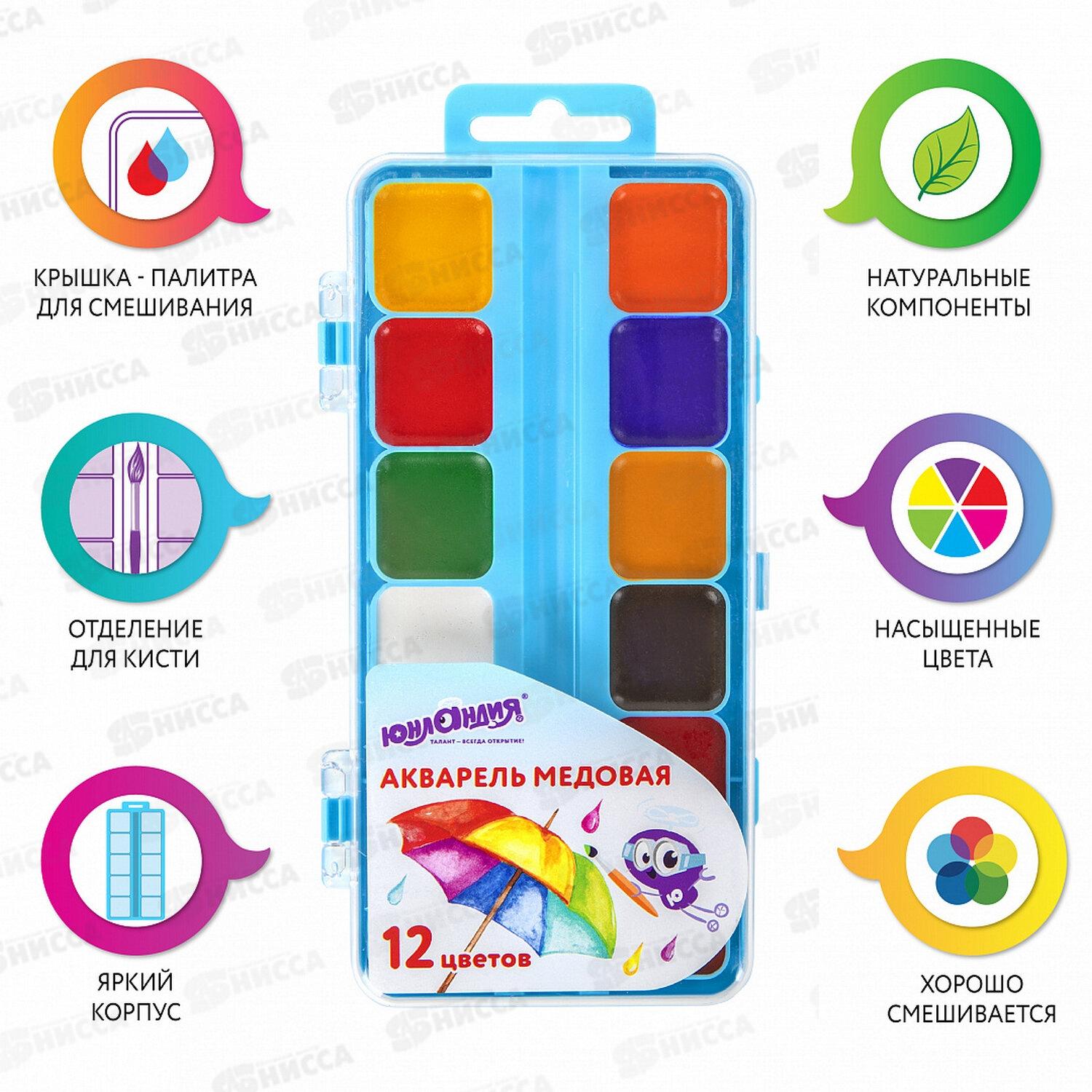 Акварель Юнладия 12цв, Юнландик-художник медовая 192287 *12
