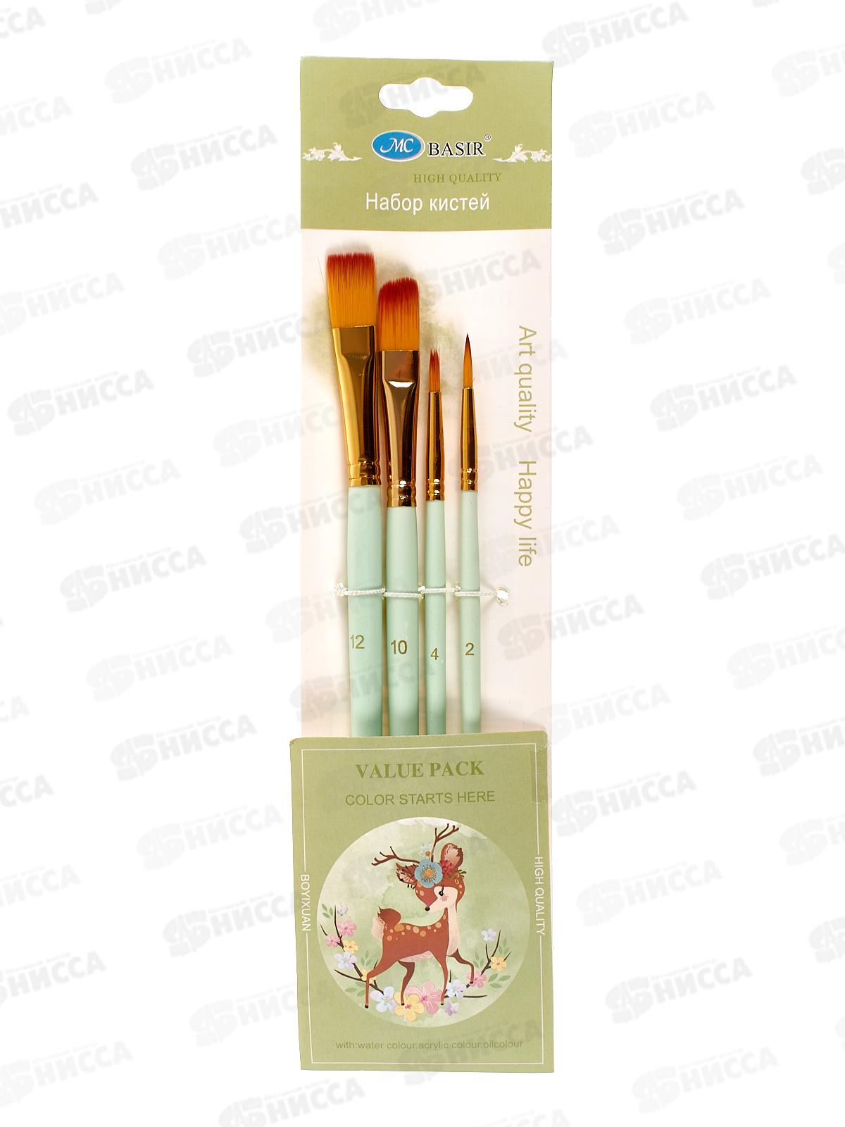 Кисти набор BASIR 4шт. худож, нейлон(кругл, плоские,№2,4,10,12)MС-5877