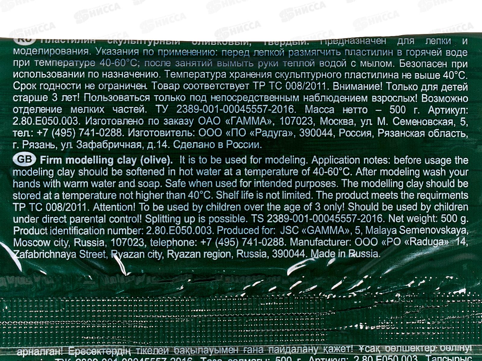 Пластилин скульптурный ГАММА 500г оливковый, твердый, 050.003 *10