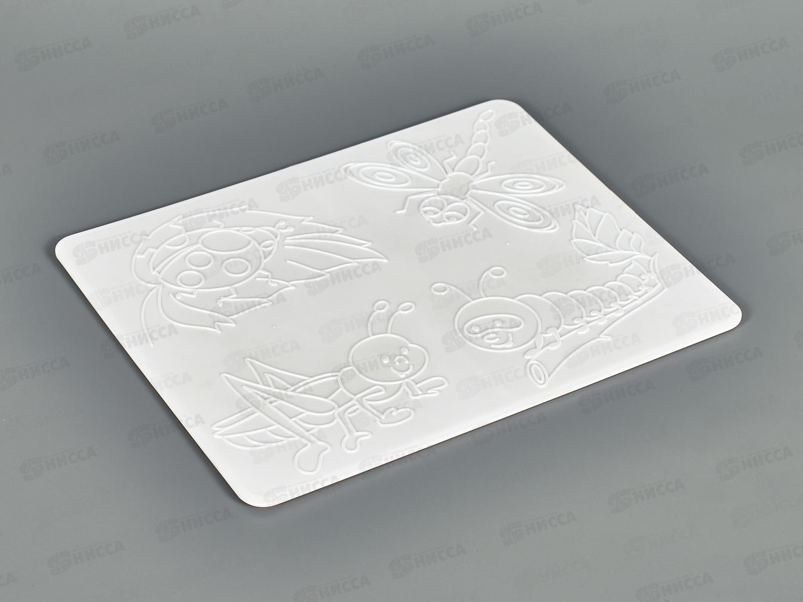 Доска для работы с пластилином производена из специального пластика, к которому не липнет пластилин. Гладкая и ровная поверхность с одной стороны идеально подходит для лепки. На обратной стороне - рельефный трафарет.
