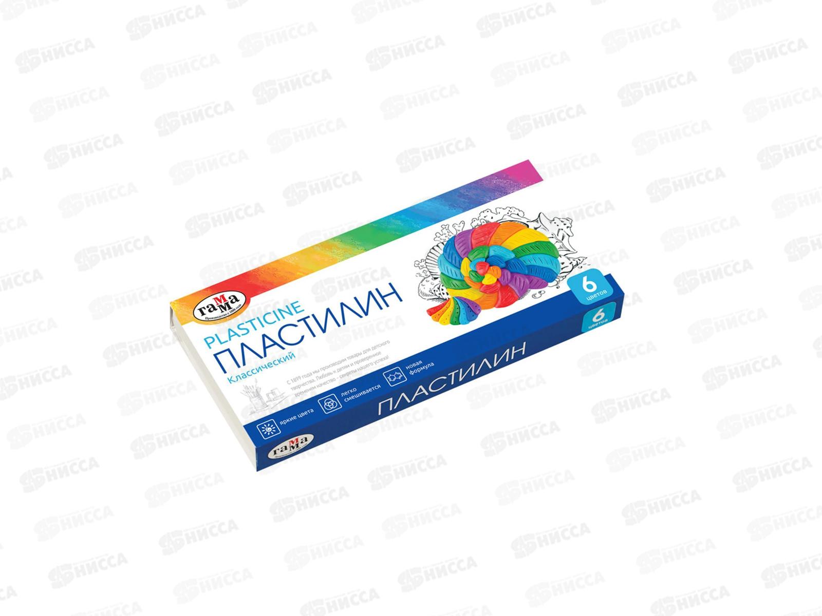Пластилин 6 цветов 120 грамм ГАММА Классический со стеком, 281030 *30
