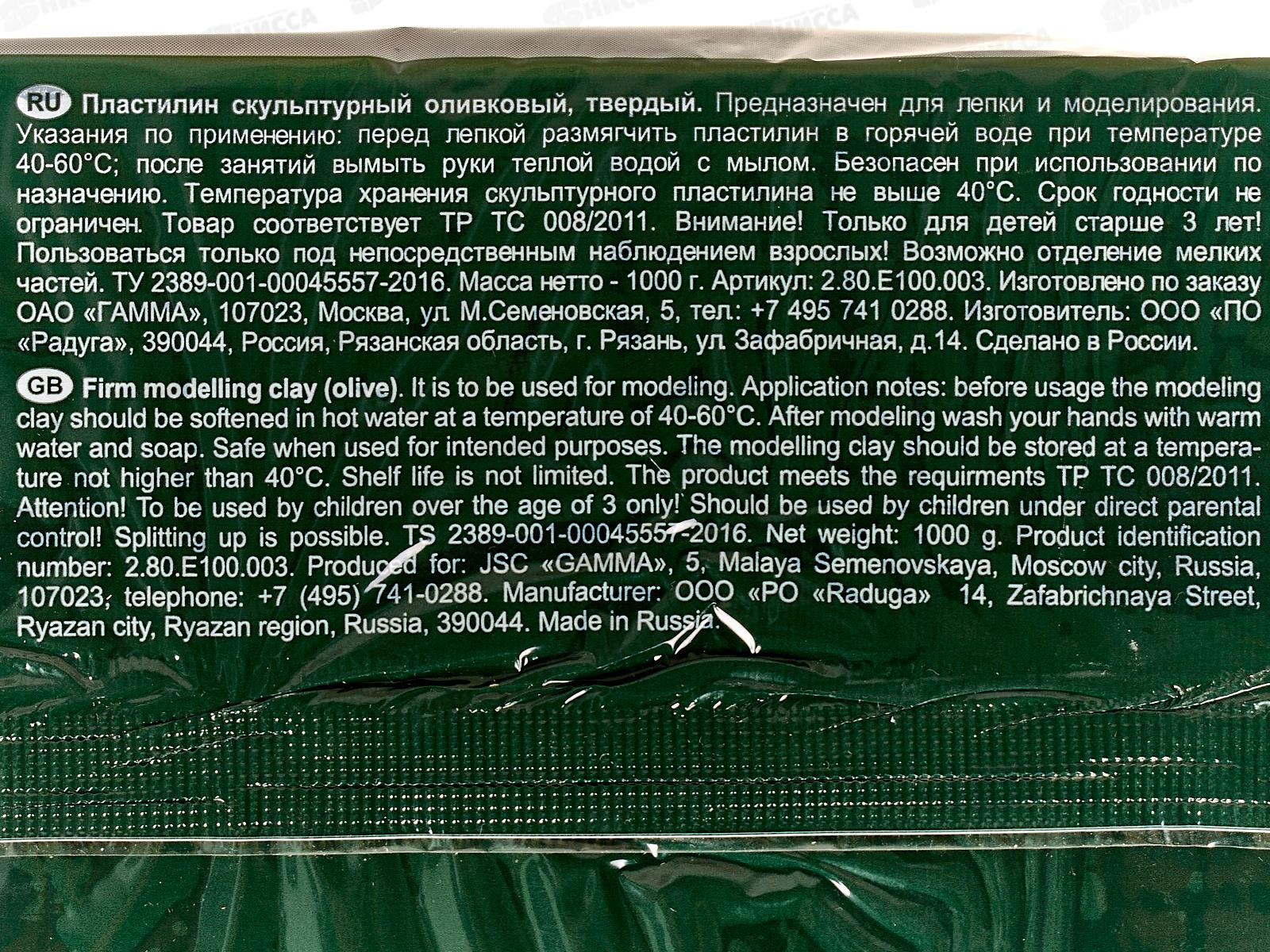 Пластилин скульптурный ГАММА 1кг оливковый, твердый, 100.00 *5