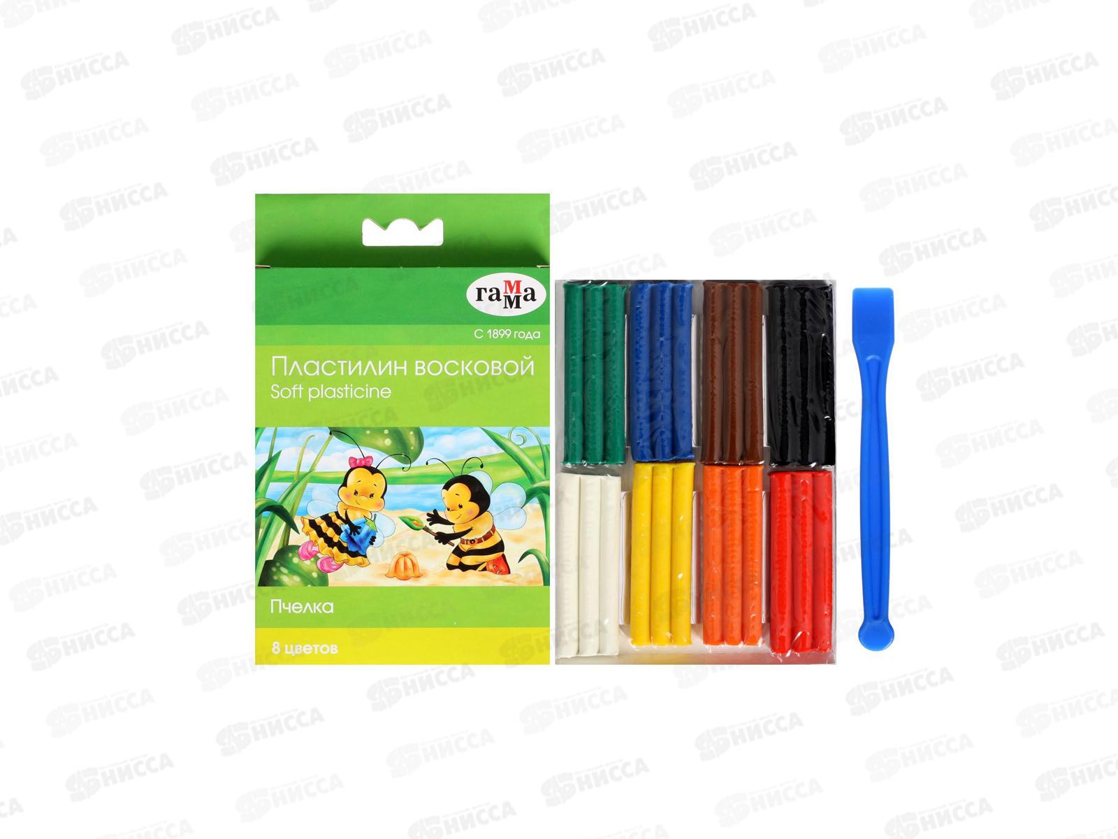 Пластилин 8цветов 120г ГАММА восковой Пчелка, стек.,мягкий 280038Н *23