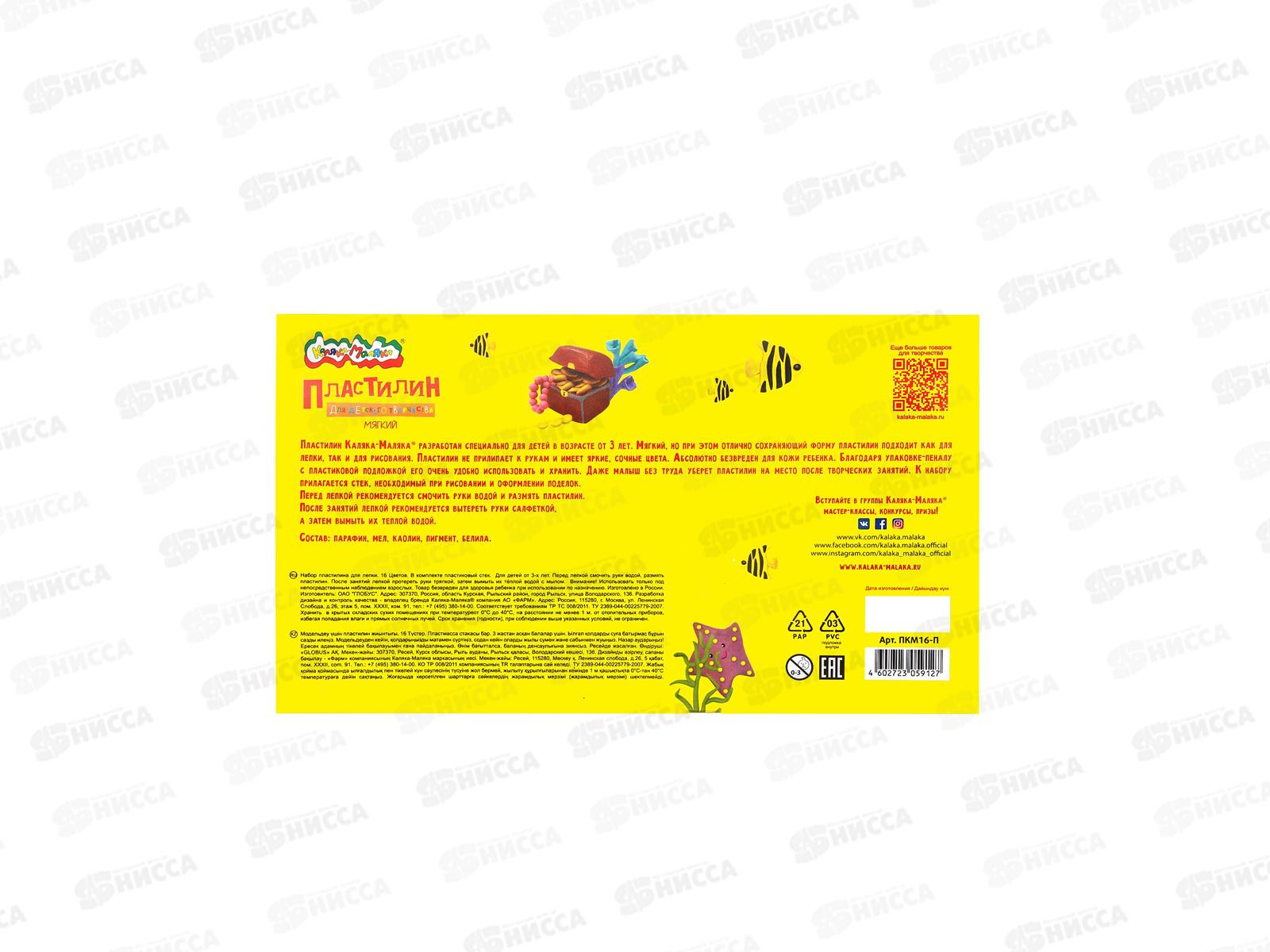 Пластилин 16цв 240г Каляка-Маляка стек, ПКМ16-П*10