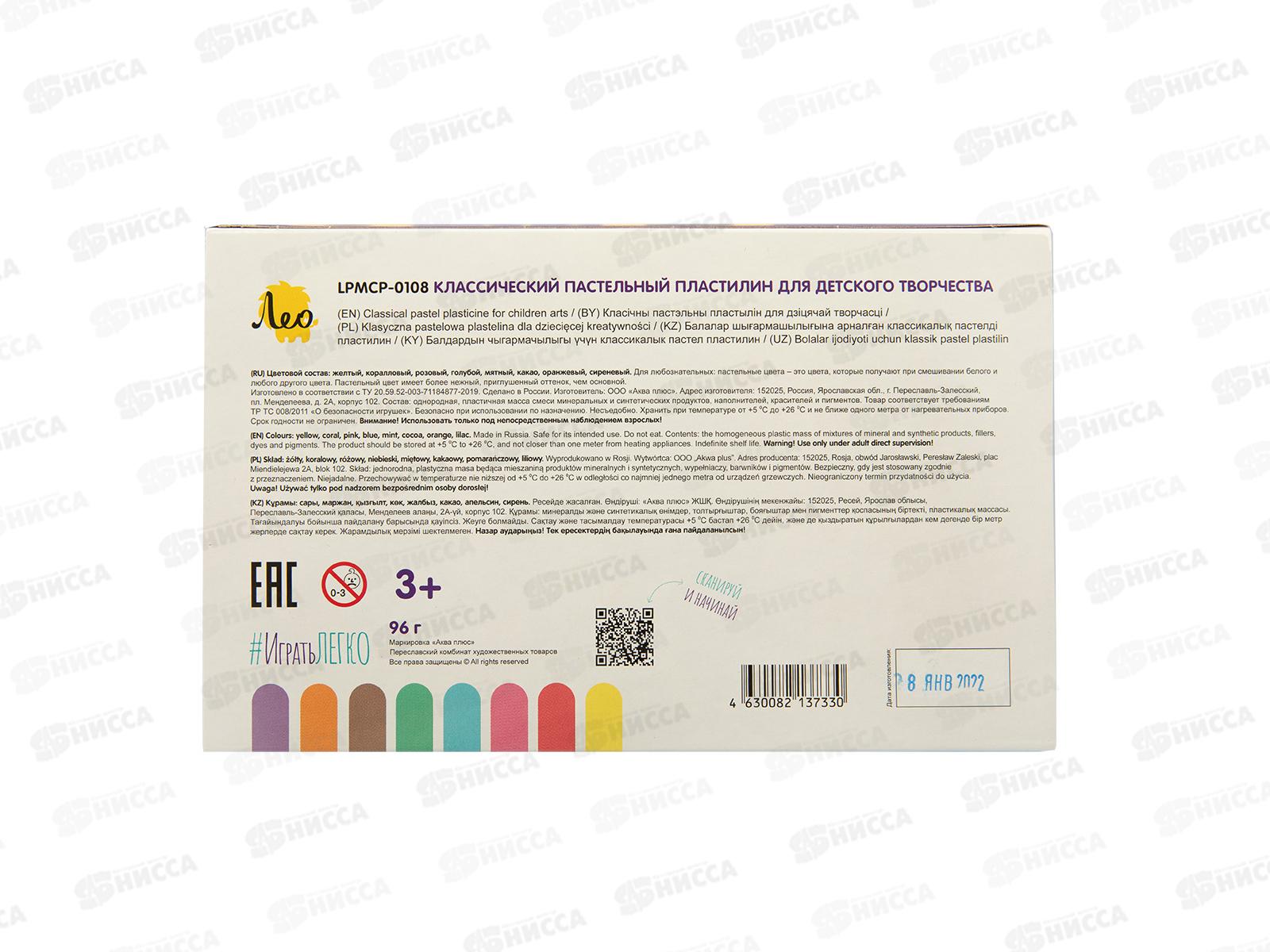 Пластилин 8цветов 96г "Лео" Играй, классический, к/у, LPMCP-0108
