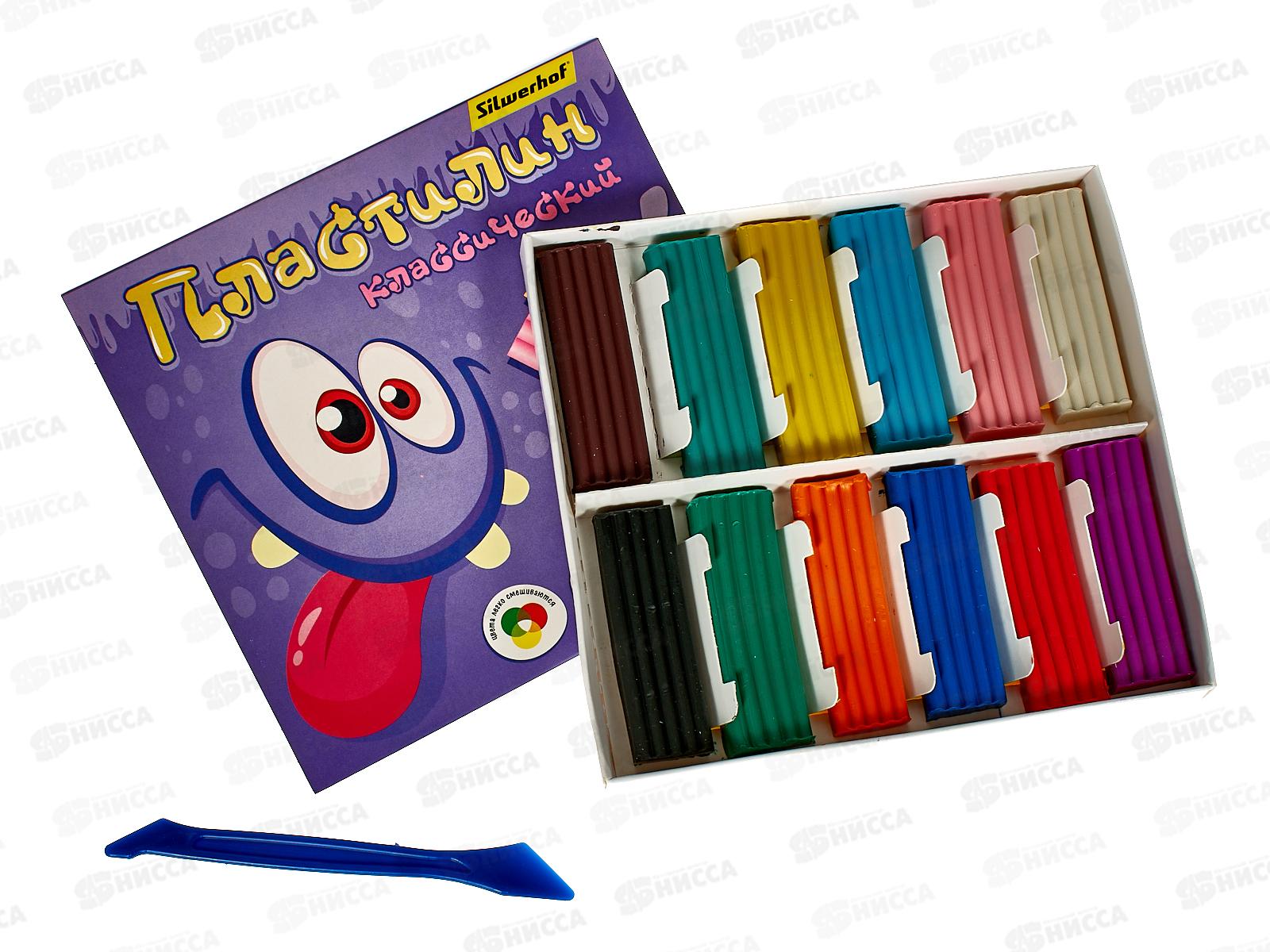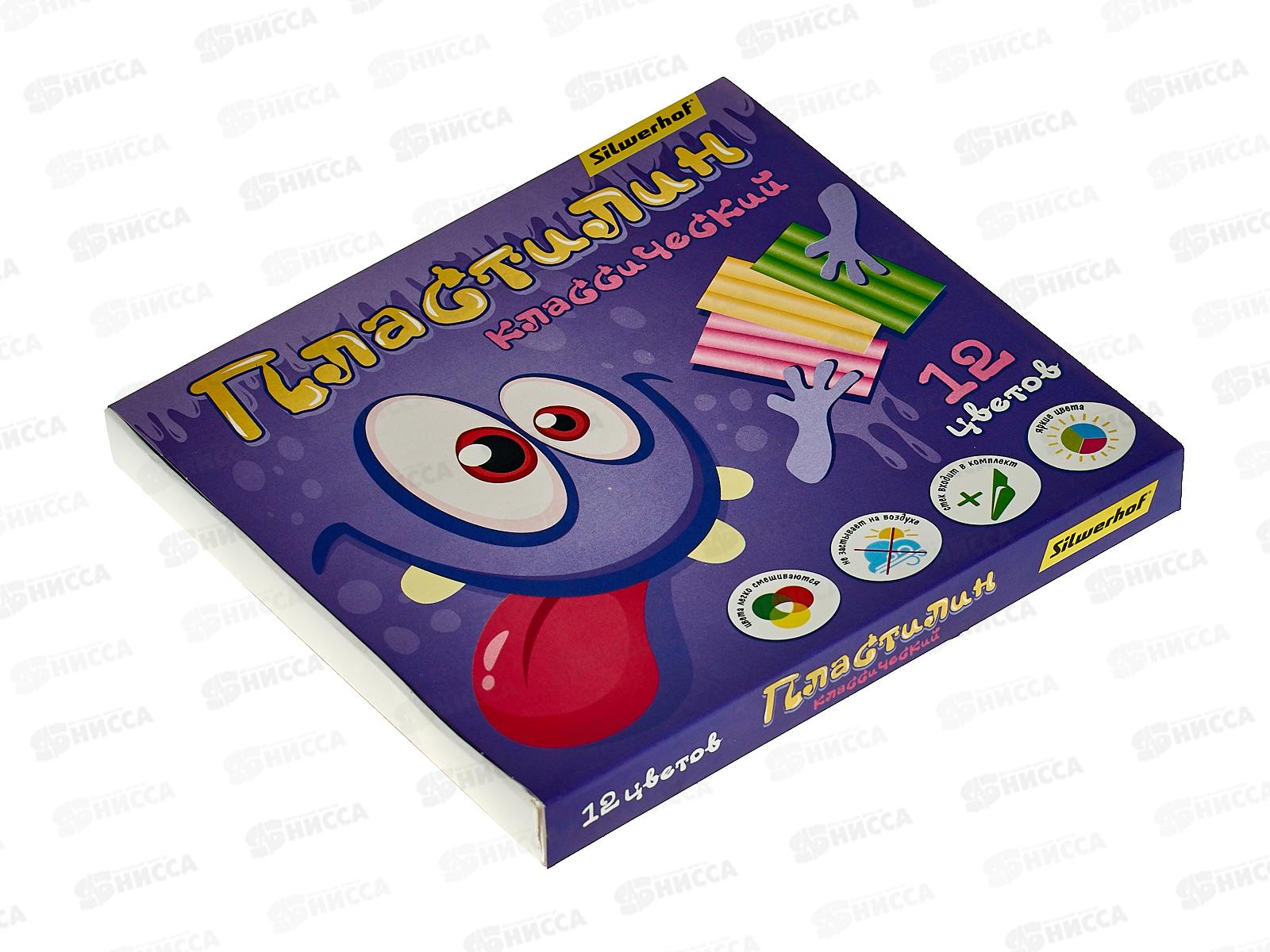 Пластилин 12цветов 180г SILWERHOF Монстрики, к/у, стек *16