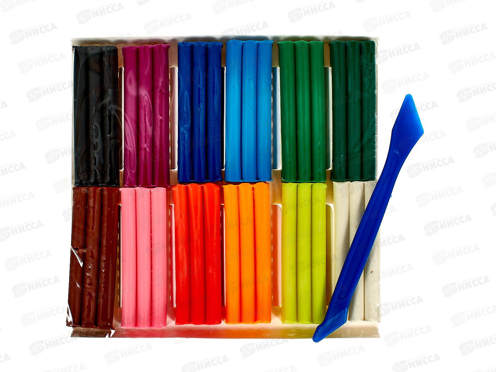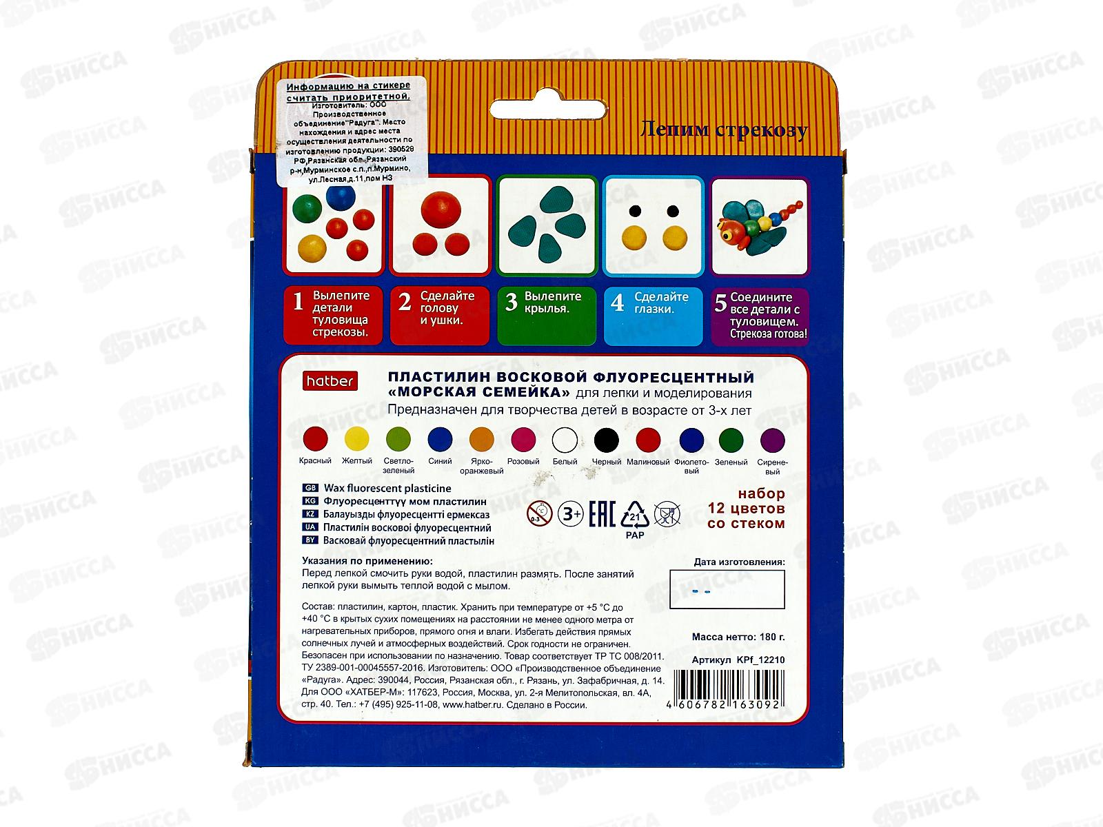 Пластилин 12цветов 180г Hatber Морская семейка, воск., стек, флуо. 12210 *19