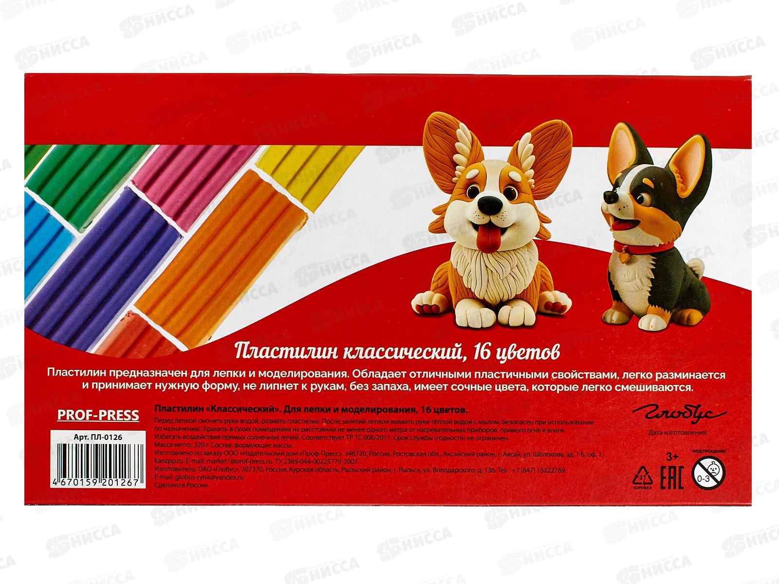 Пластилин 16цв 320г ПП классический, ПЛ-0126 *10