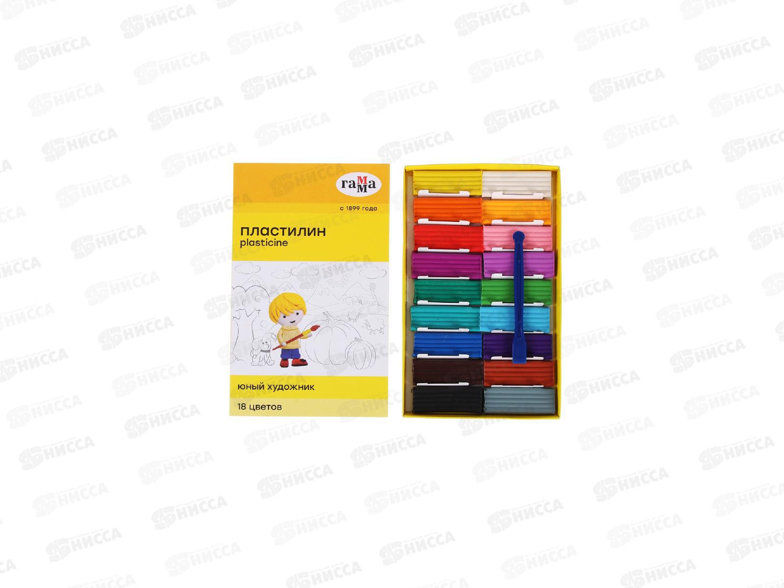 Пластилин 18 цветов 252 грамма ГАММА Юный художник, со стеком, 280047 *10