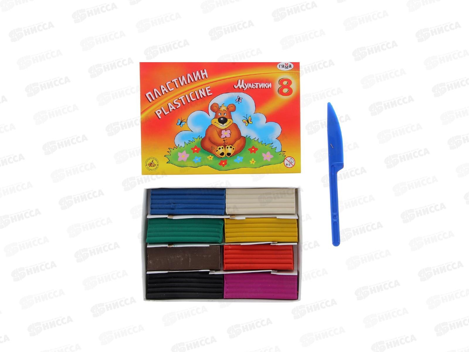 Пластилин 8 цветов 160 грамм ГАММА Мультики, со стеком, картонная упаковка, 280016 *23