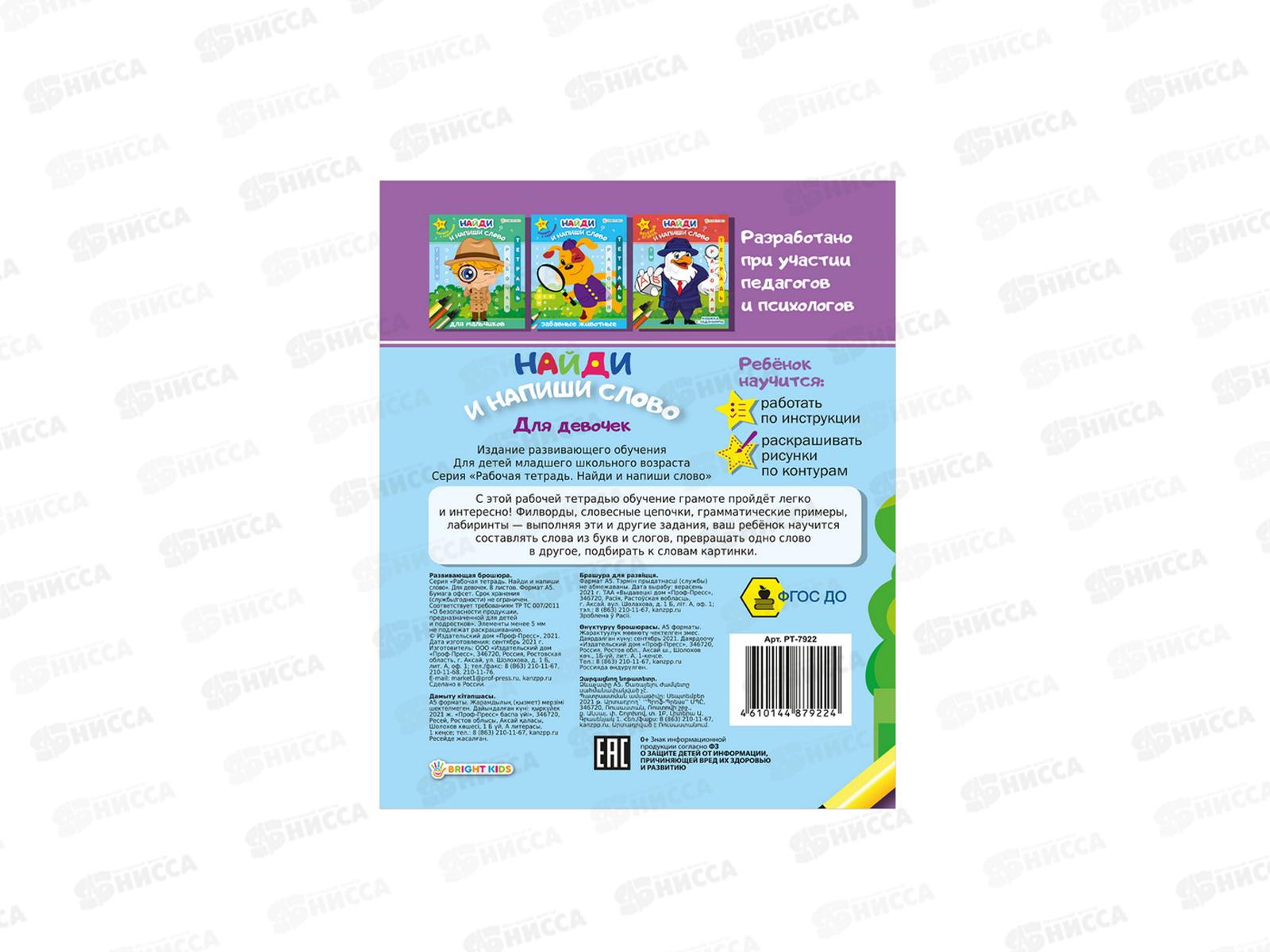 Рабочая тетрадь. ПП Найди напиши слово, для девочек, РТ-7922 *50