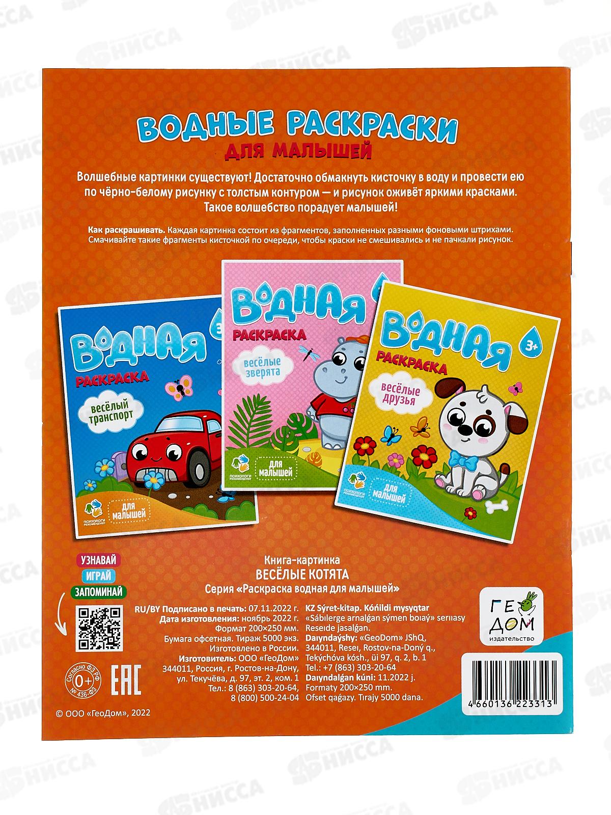 Раскраска водная ГД Для малышей. Веселые котята. 6л, 20х25см, 23313
