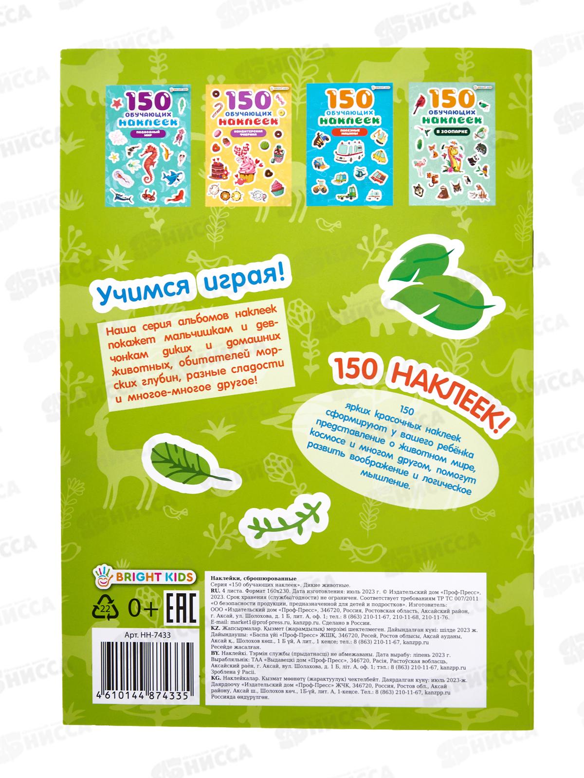 Обучающие наклейки ПП Дикие животные 150шт НН-7433 4л