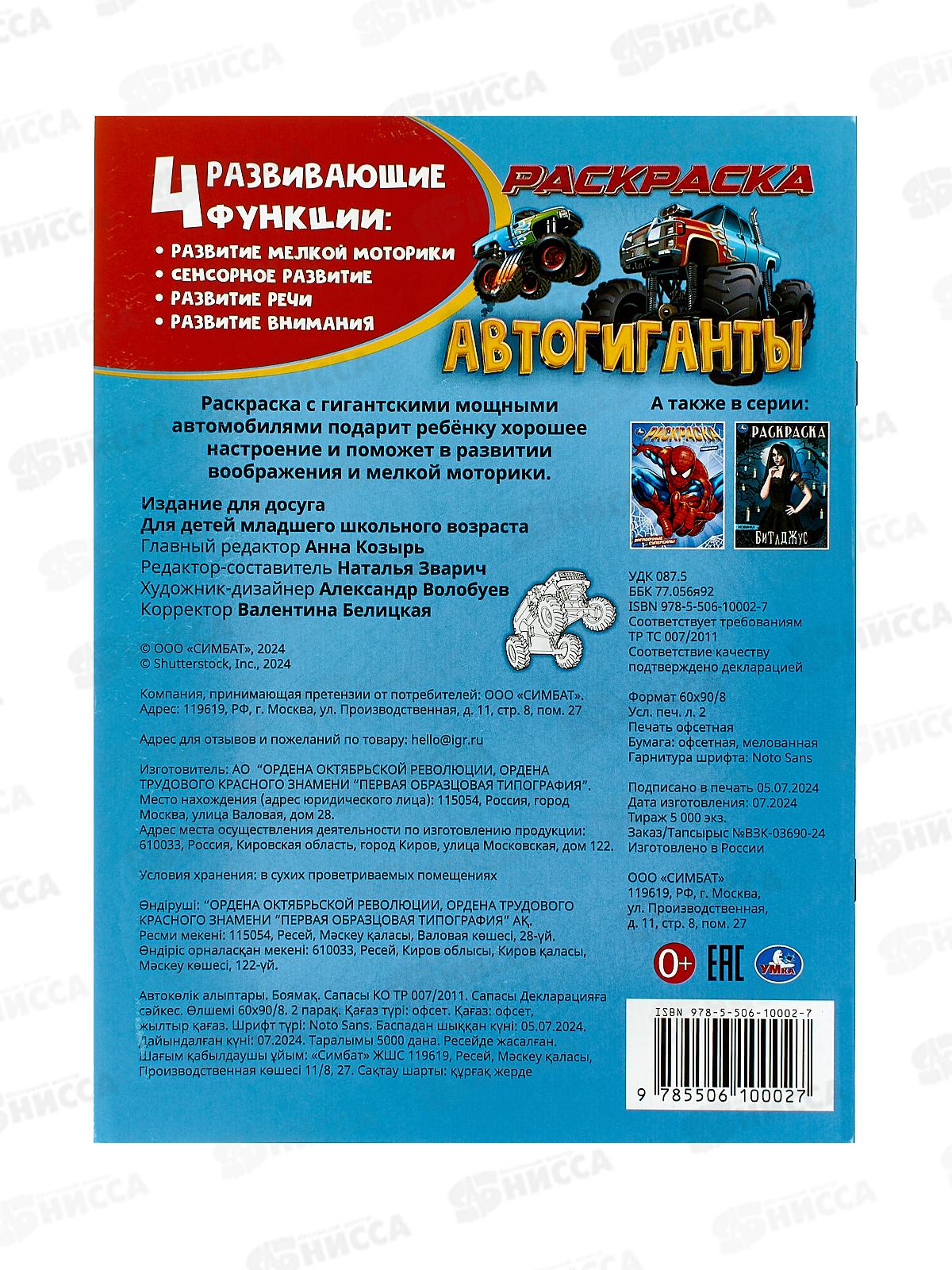 Раскраска "УМКА" 10002-7, Автогиганты, 214х290мм, 16стр. *50