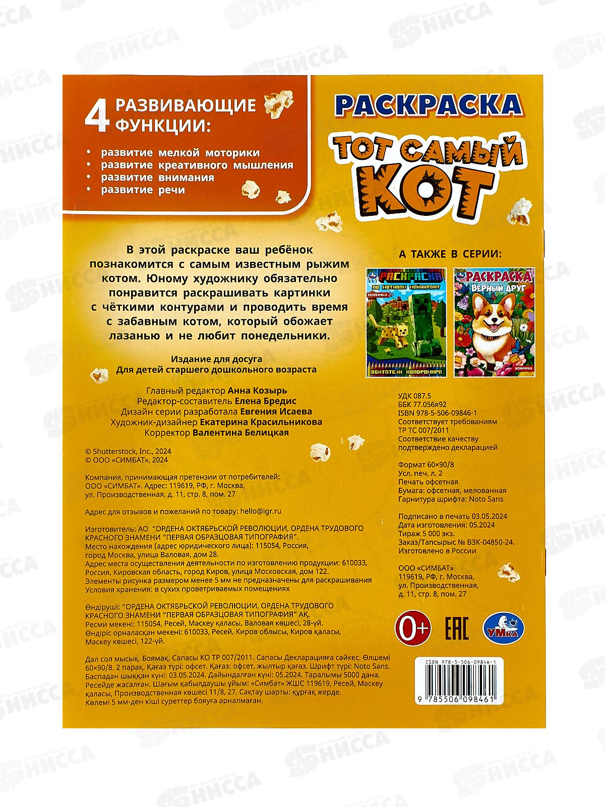 Раскраска «Тот самый кот» ТМ «УМка» - отличный подарок для юных художников: